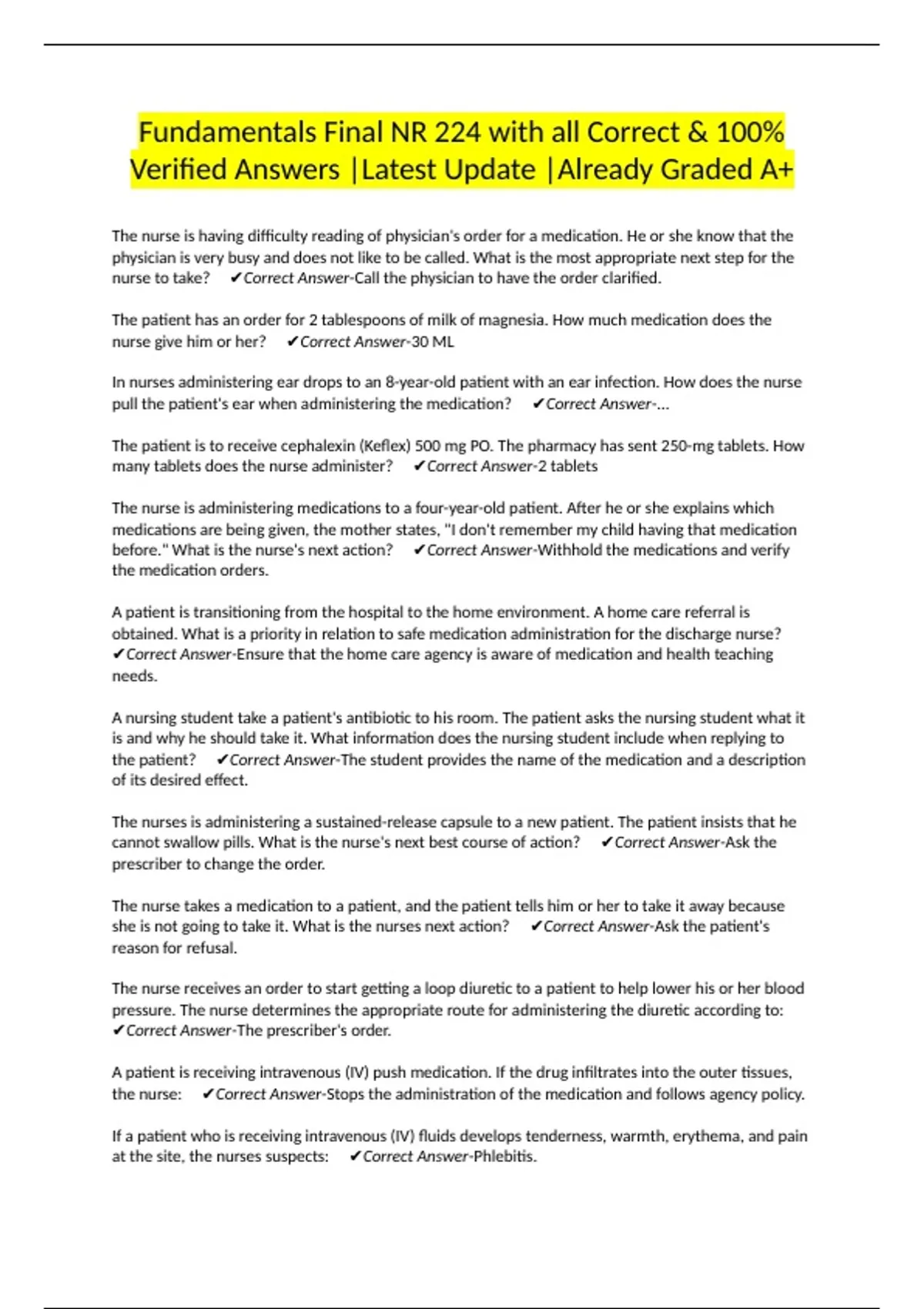 Verified Answers |Latest Update |Already Graded A+