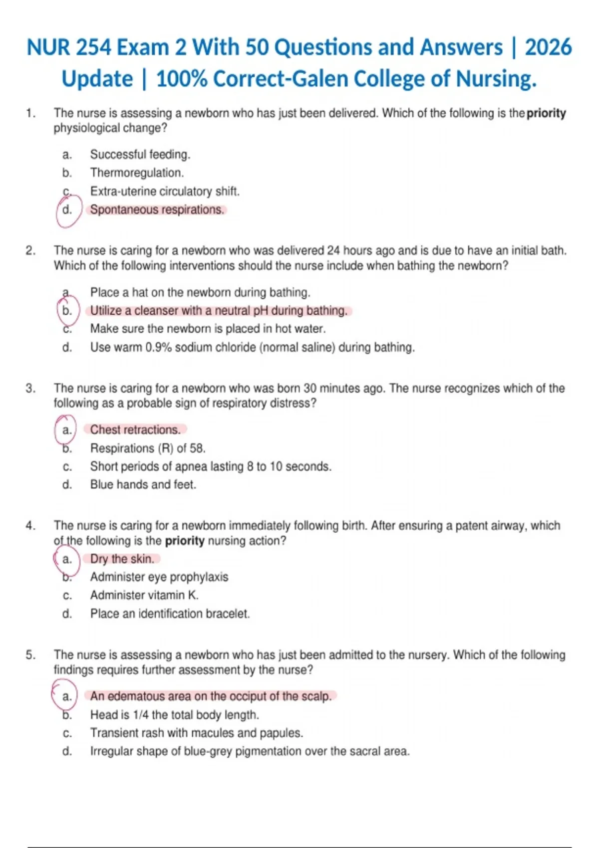 NUR 254 Exam 2 With 50 Questions and Answers | 2026 Update | 100% Correct-Galen College of Nursing.