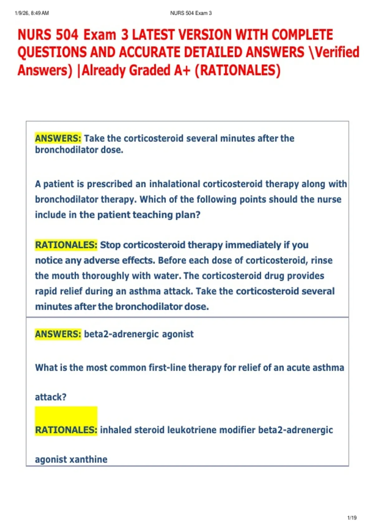 NURS 504 Exam 3 LATEST VERSION WITH COMPLETE