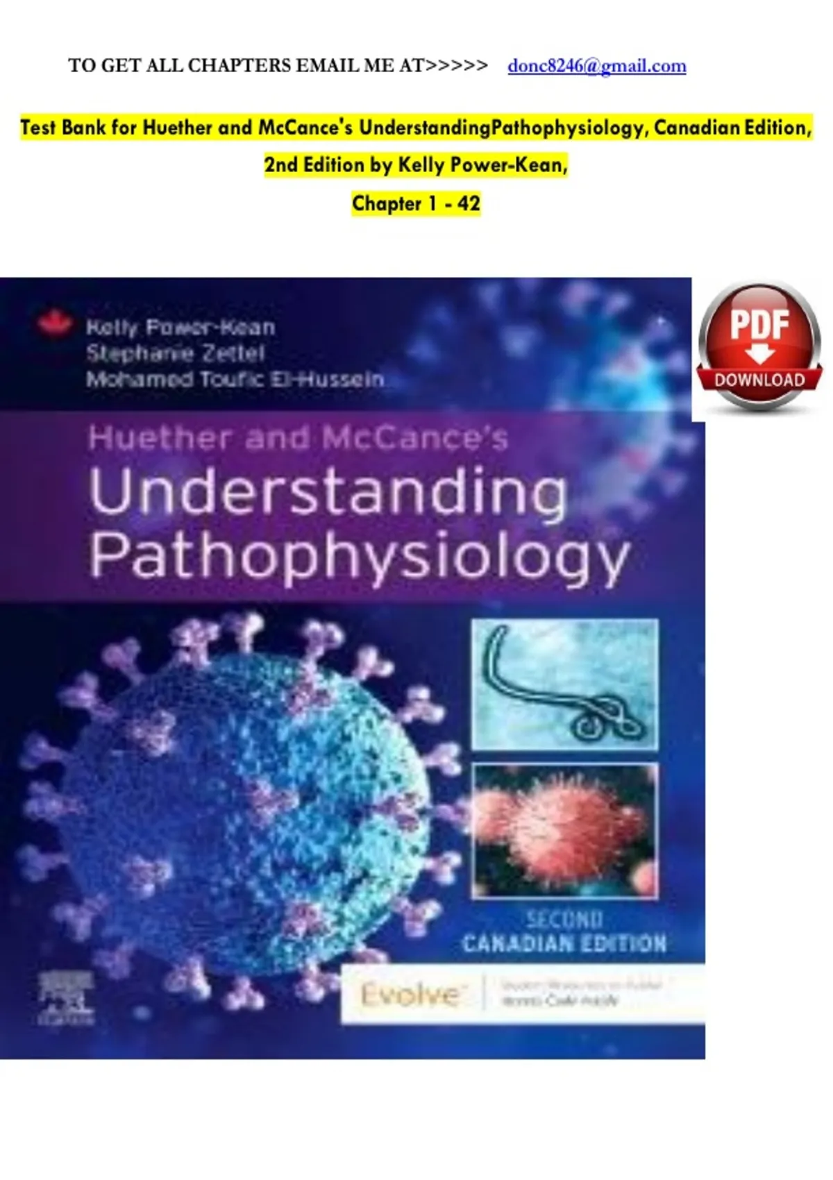 Test Bank for Huether and McCance's UnderstandingPathophysiology, Canadian Edition, 2nd Edition by Kelly Power-Kean, Chapter 1 - 42