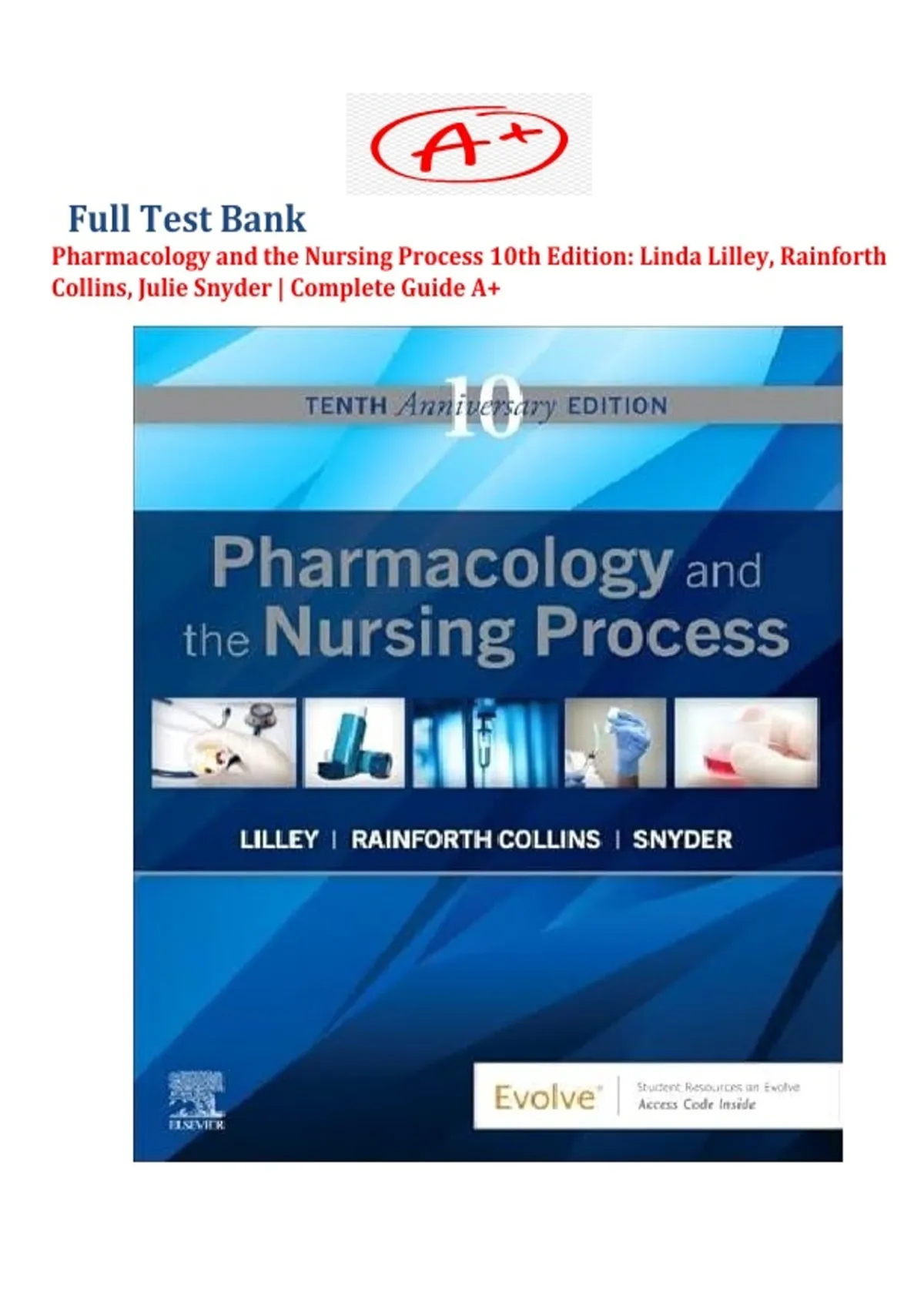 Test Bank For Pharmacology and the Nursing Process 10th Edition By Linda Lilley (All Chapters )|| Complete Study Solution|| Guide A+.