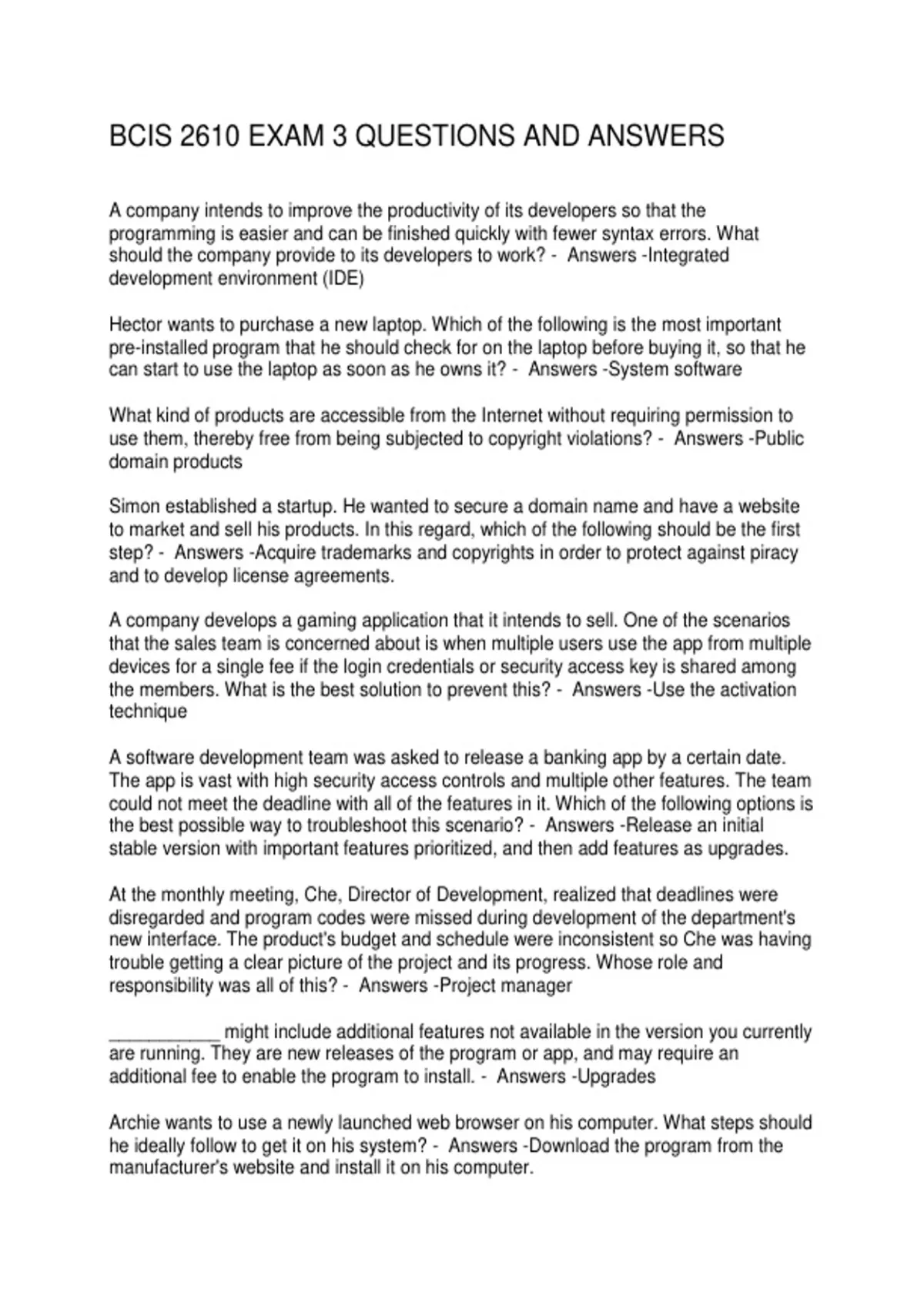 BCIS 2610 EXAM 3 QUESTIONS AND ANSWERS