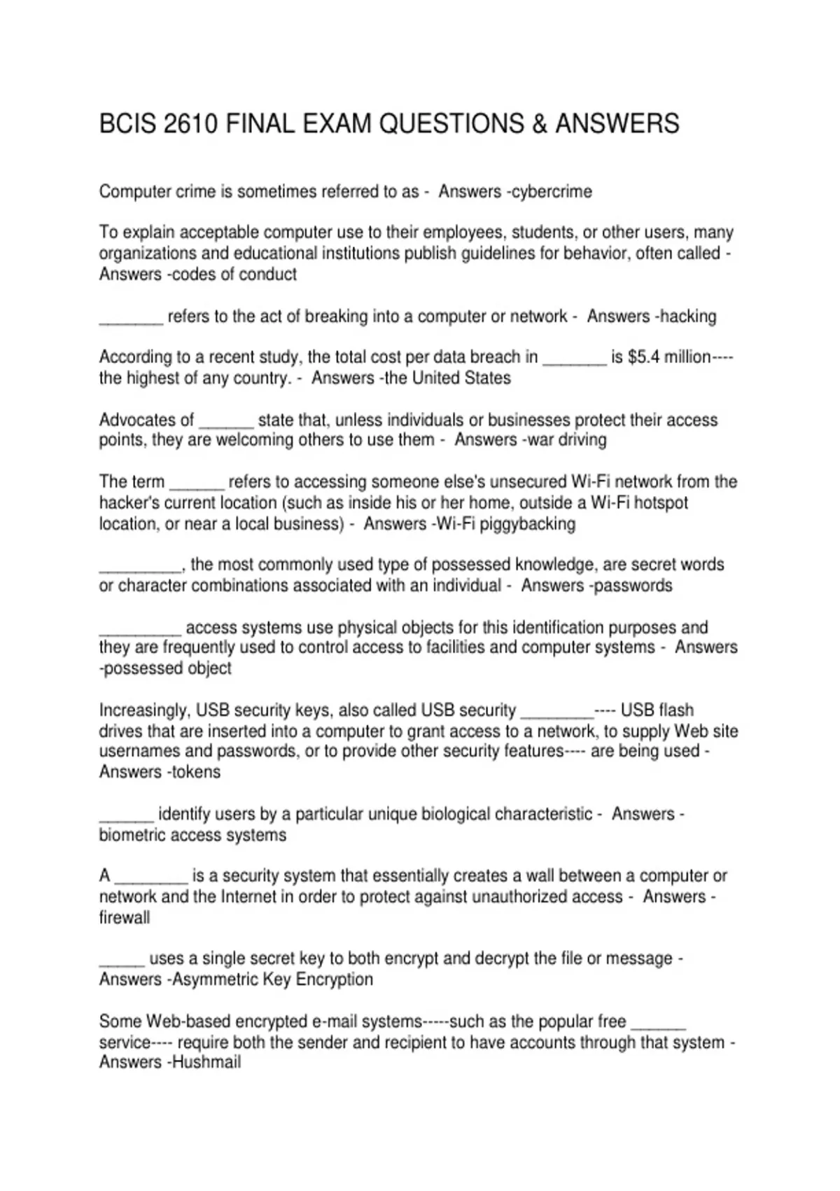 BCIS 2610 FINAL EXAM QUESTIONS & ANSWERS