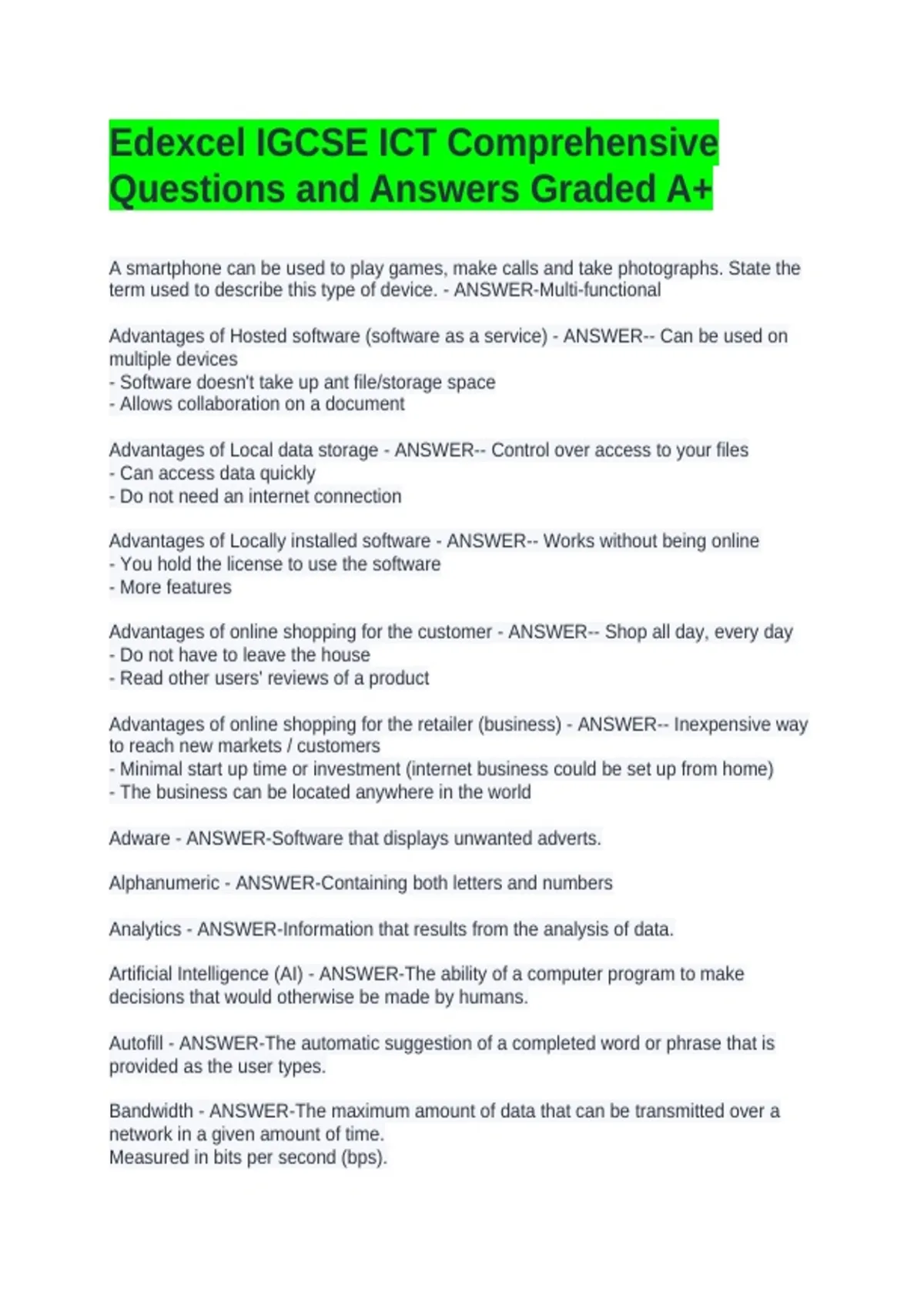 Questions and Answers Graded A+