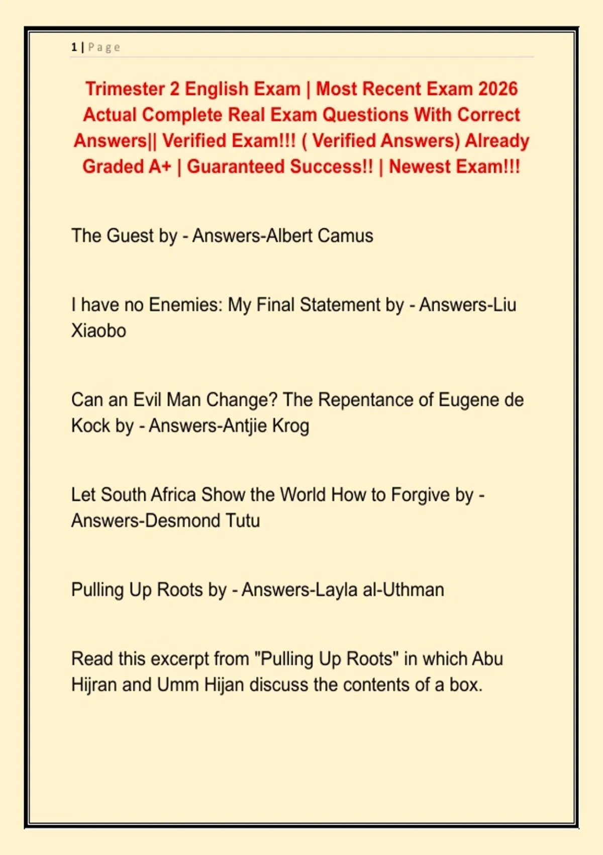 Trimester 2 English Exam | Most Recent Exam 2026