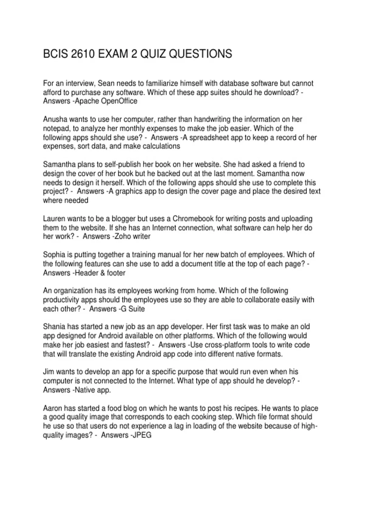 BCIS 2610 EXAM 2 QUIZ QUESTIONS