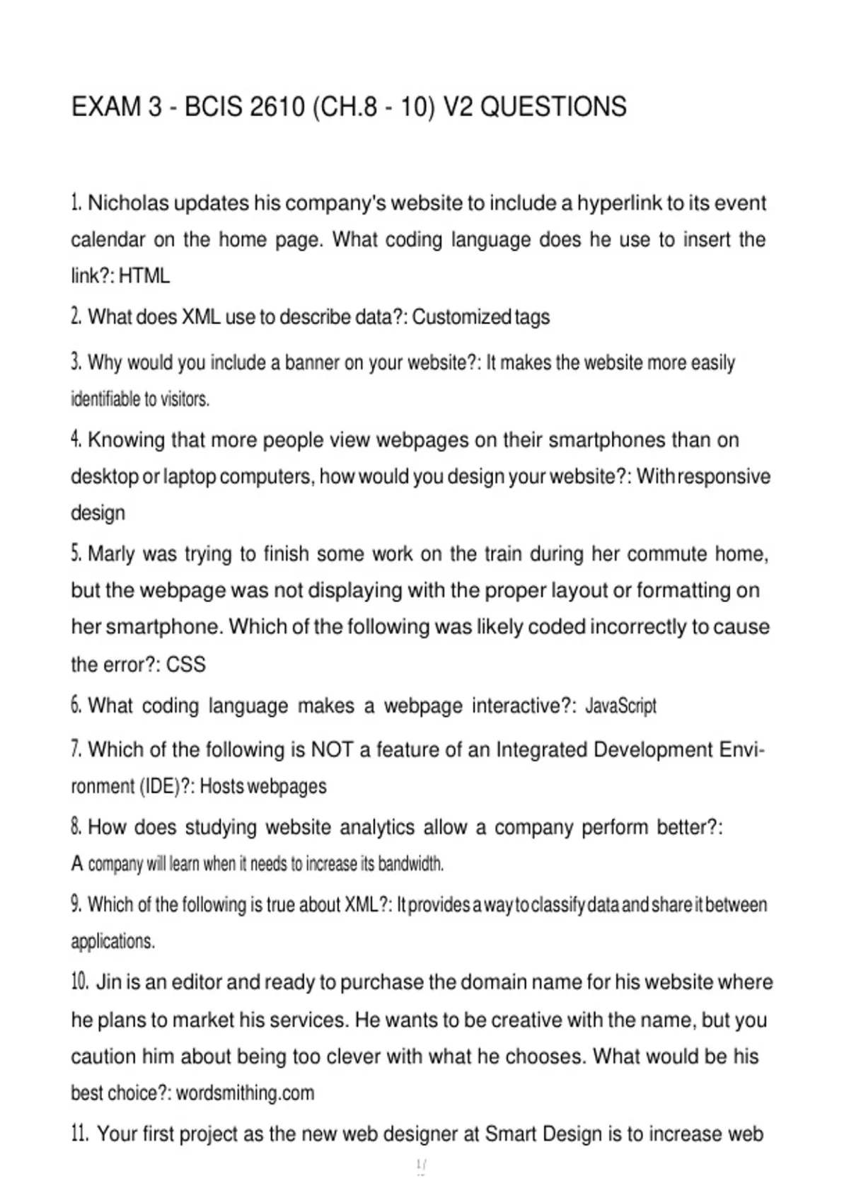 EXAM 3 - BCIS 2610 (CH.8 - 10) V2 QUESTIONS