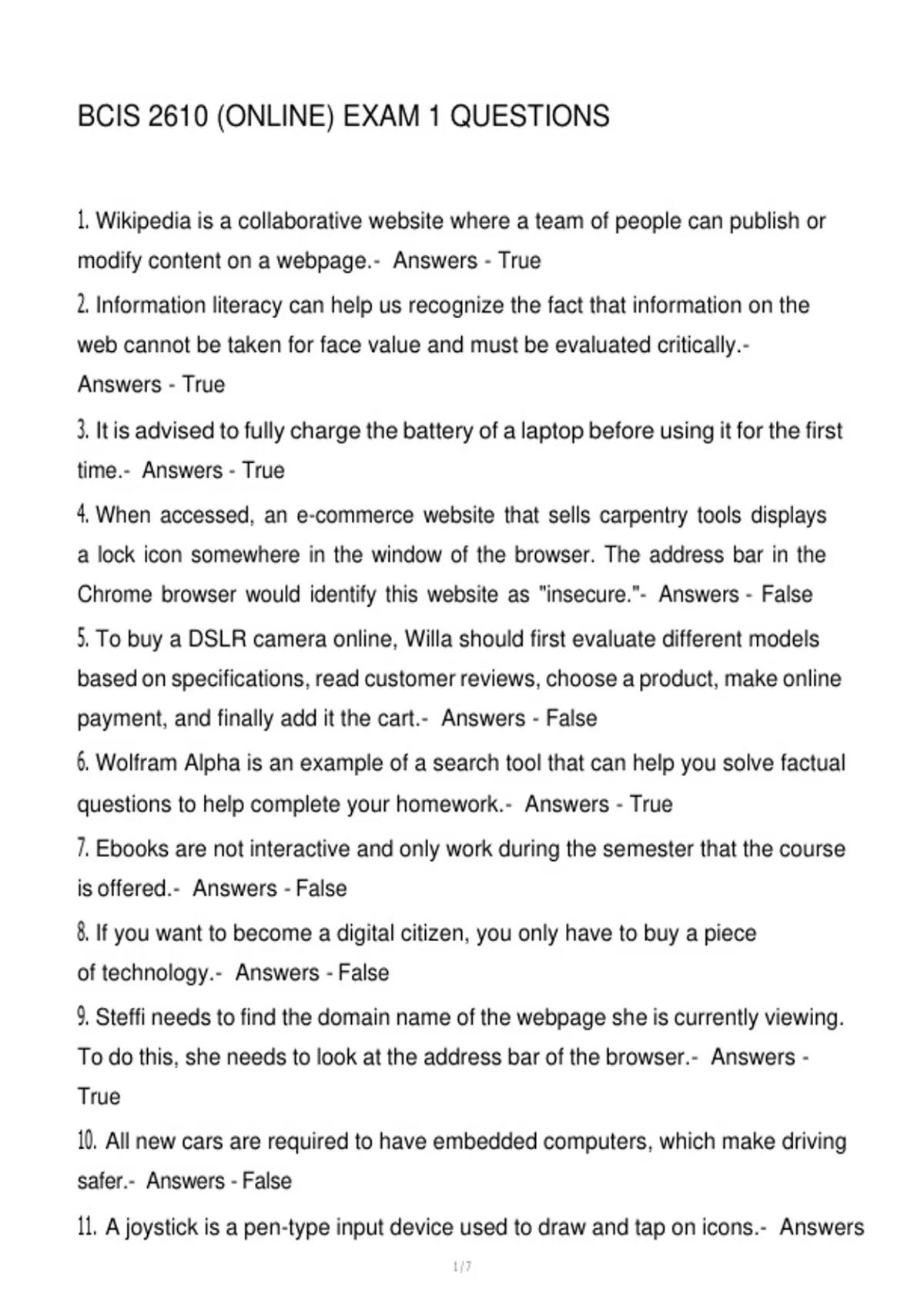 BCIS 2610 (ONLINE) EXAM 1 QUESTIONS