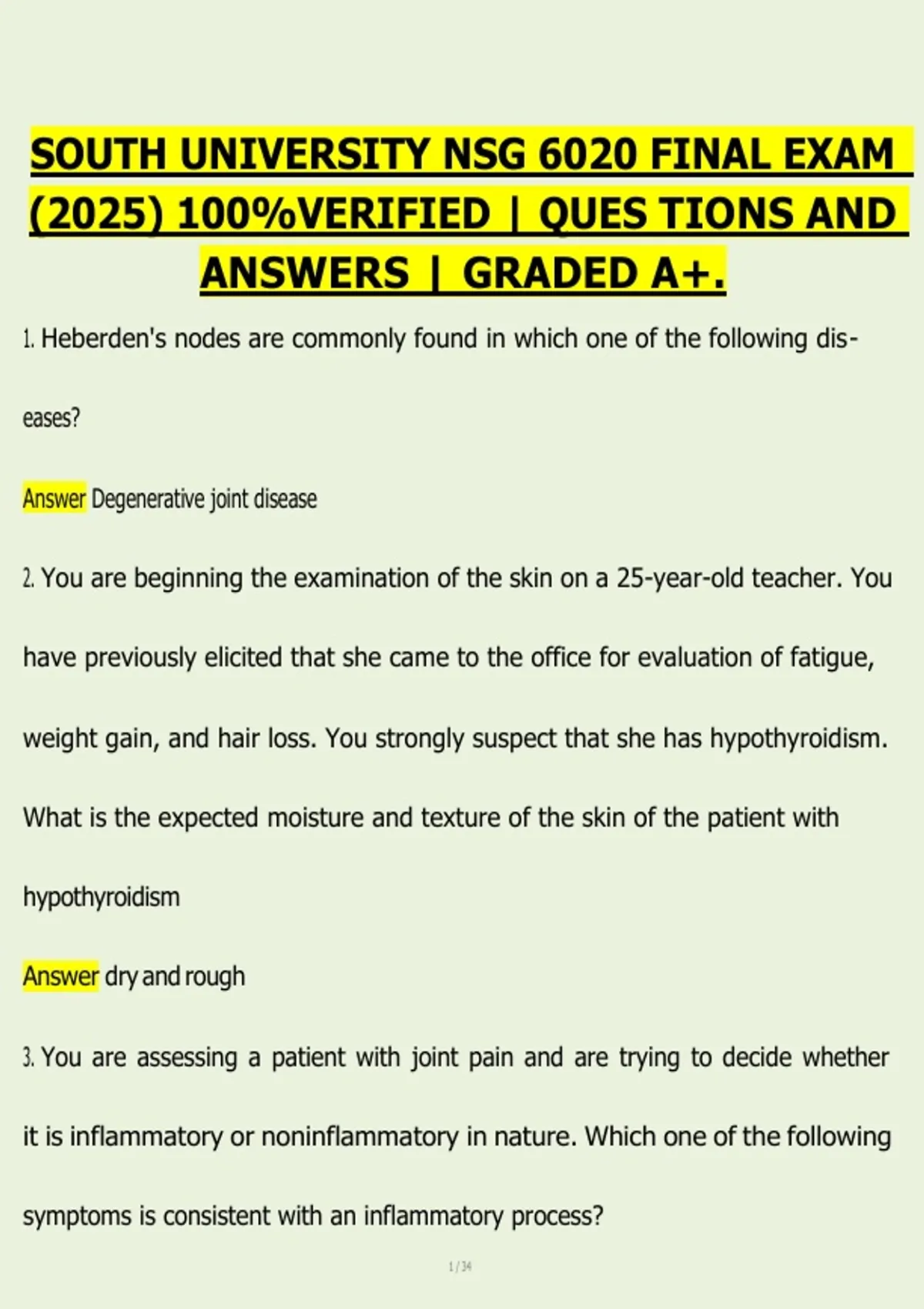 SOUTH UNIVERSITY NSG 6020 FINAL EXAM
