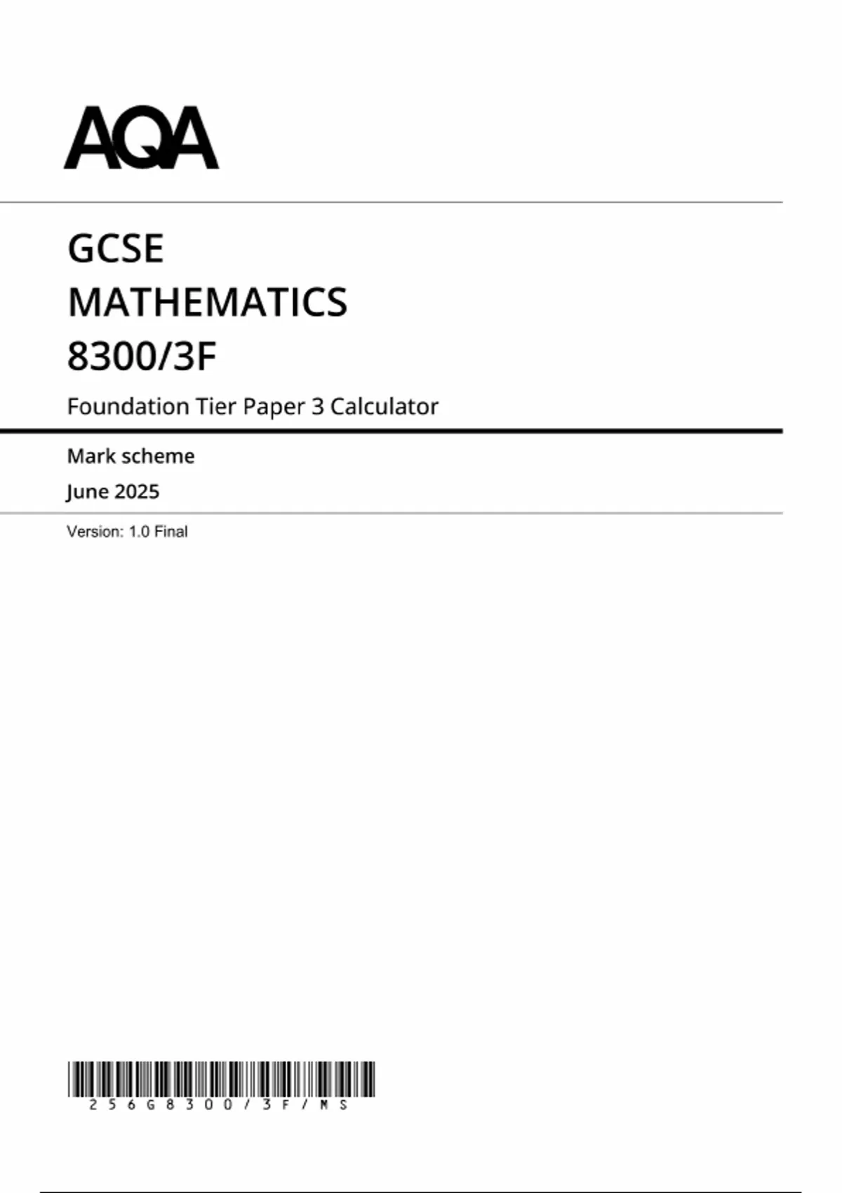 2025 AQA GCSE MATHEMATICS FOUNDATION TIER PAPER 3 MARKSCHEME (8300/3F: Calculator).