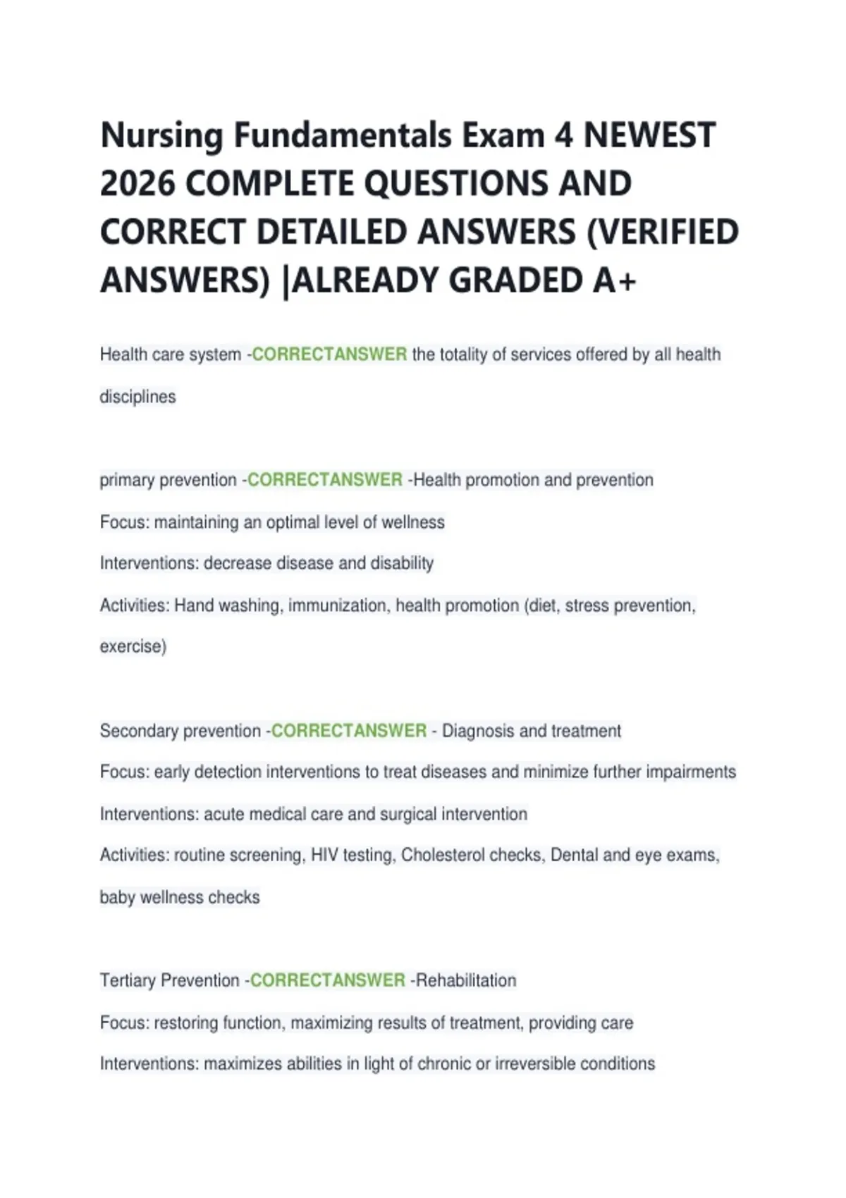 primary prevention -CORRECTANSWER -Health promotion and prevention