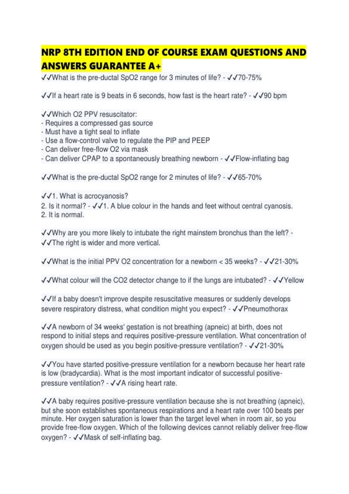 ✔✔What is the pre-ductal SpO2 range for 1 minute of life? - ✔✔60-65%