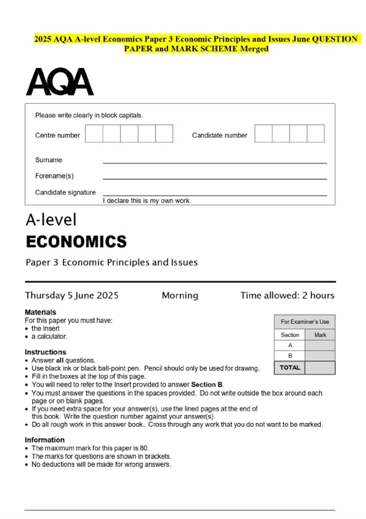 2025 AQA A-level Economics Paper 3 Economic Principles and Issues June QUESTION PAPER and MARK SCHEME Merged