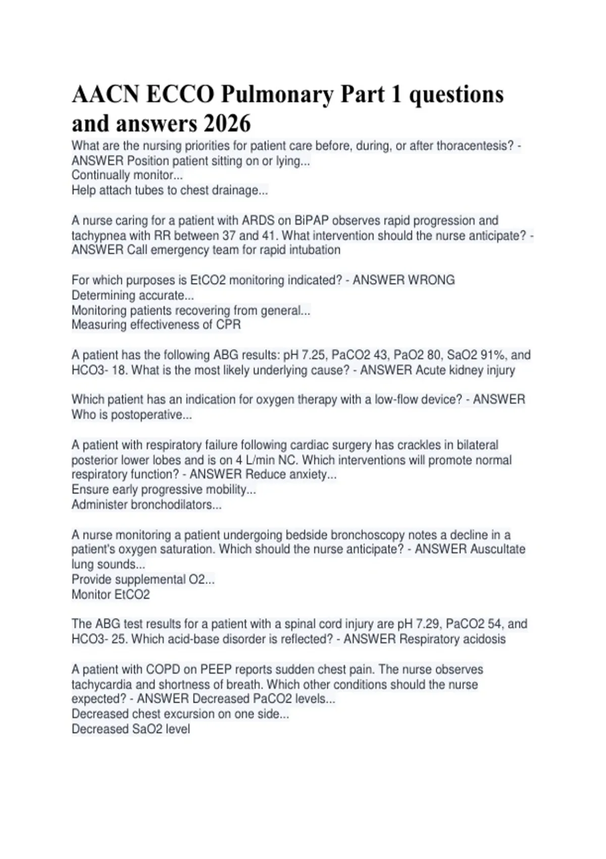 AACN ECCO Pulmonary Part 1 questions and answers 2026