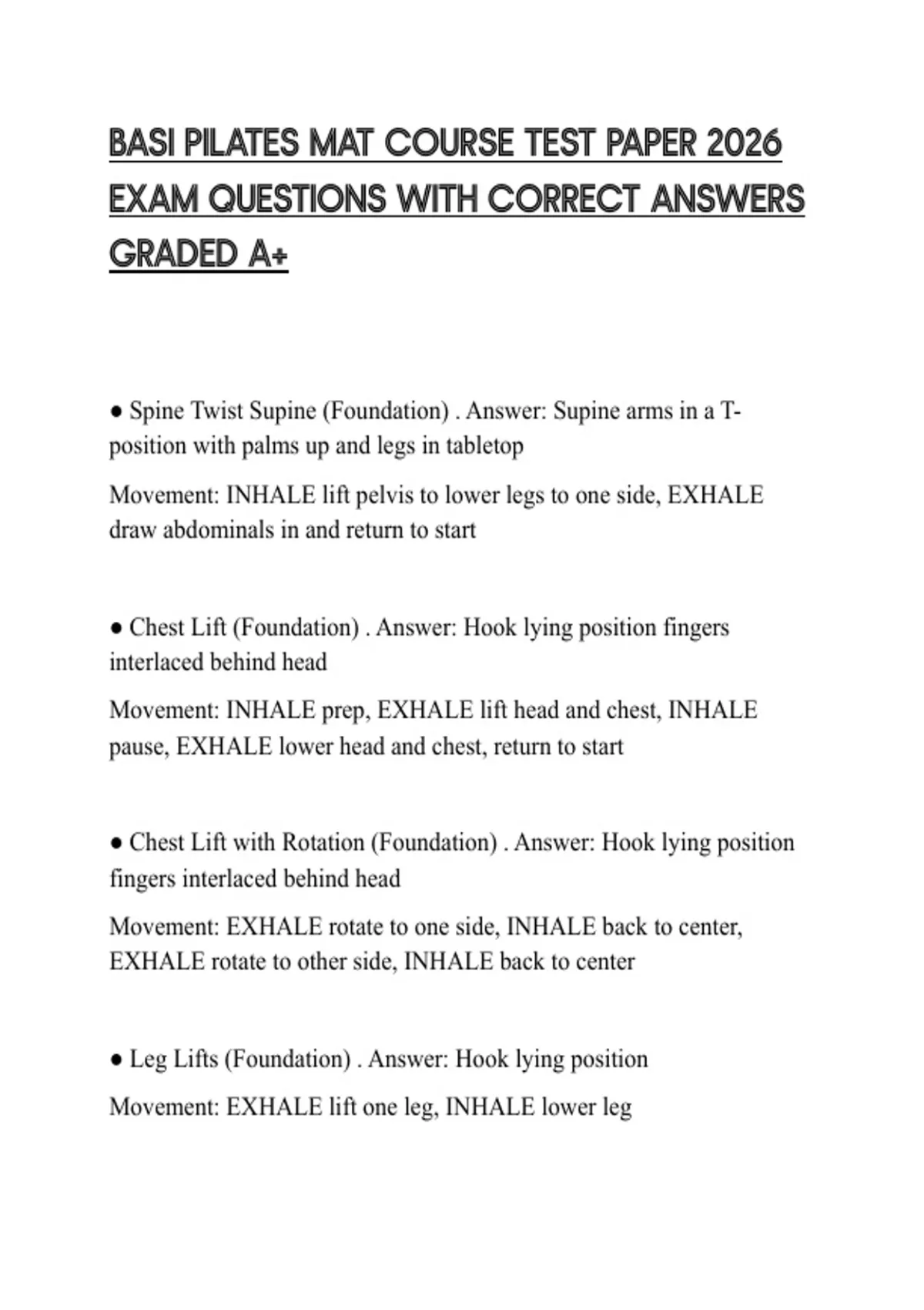 ● Chest Lift with Rotation (Foundation) . Answer: Hook lying position