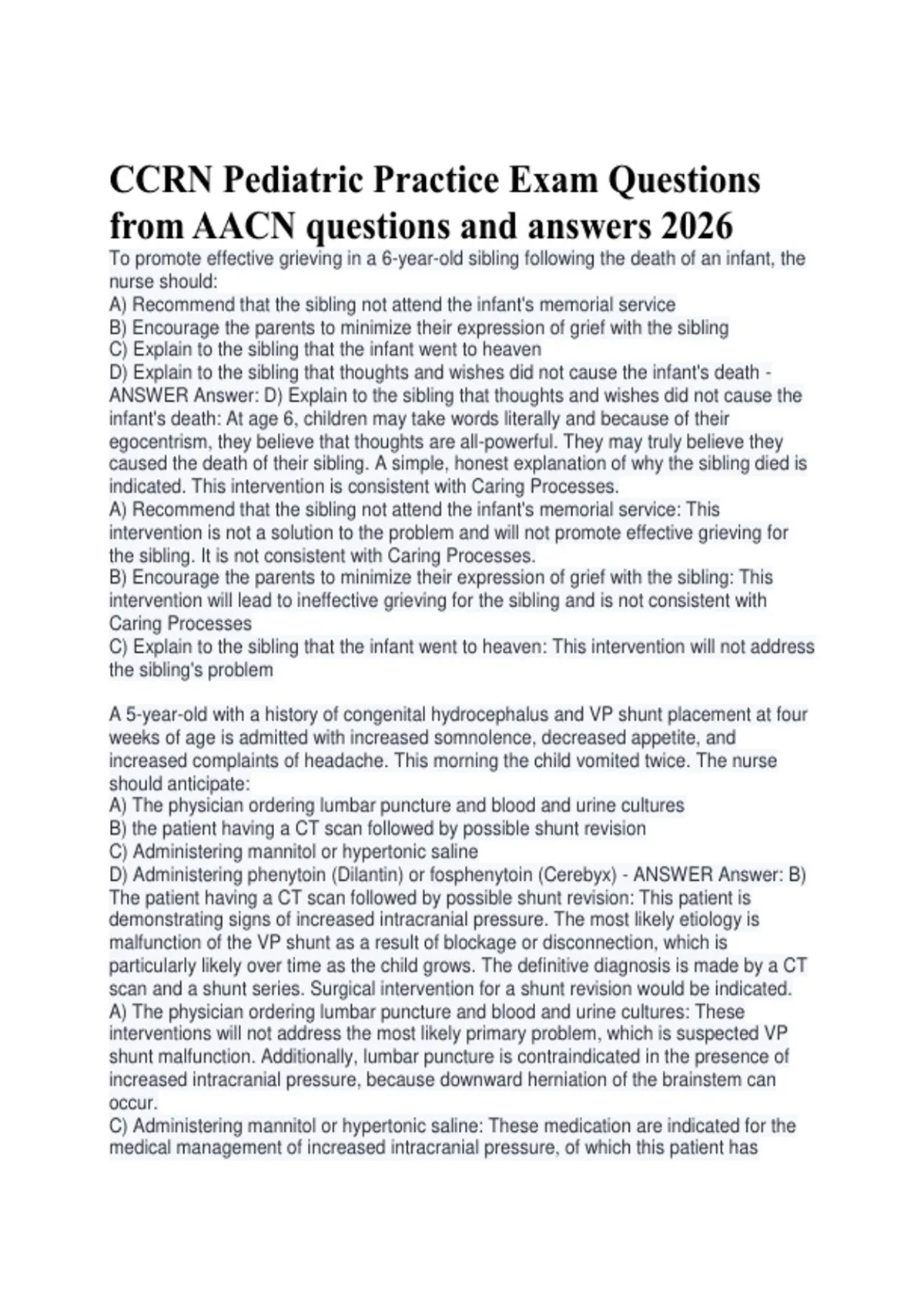 CCRN Pediatric Practice Exam Questions