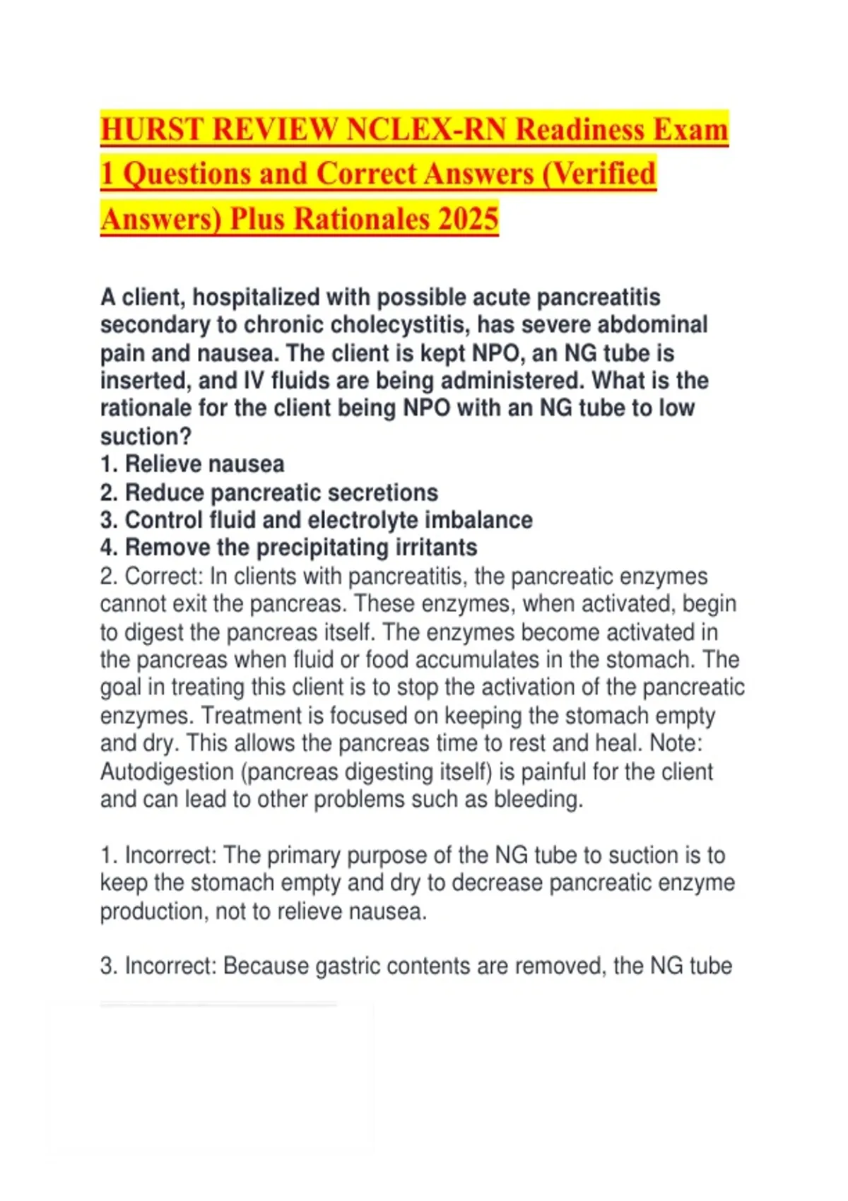 HURST REVIEW NCLEX-RN Readiness Exam 1 Questions and Correct Answers (Verified Answers) Plus Rationales 2025