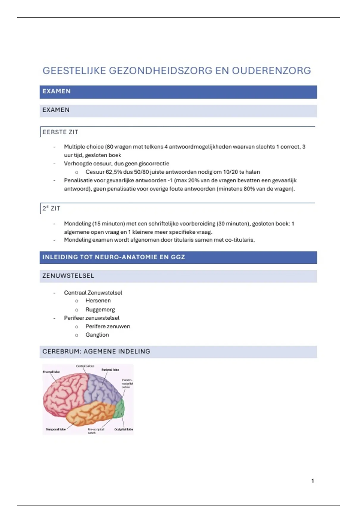 INLEIDING TOT NEURO-ANATOMIE EN GGZ
