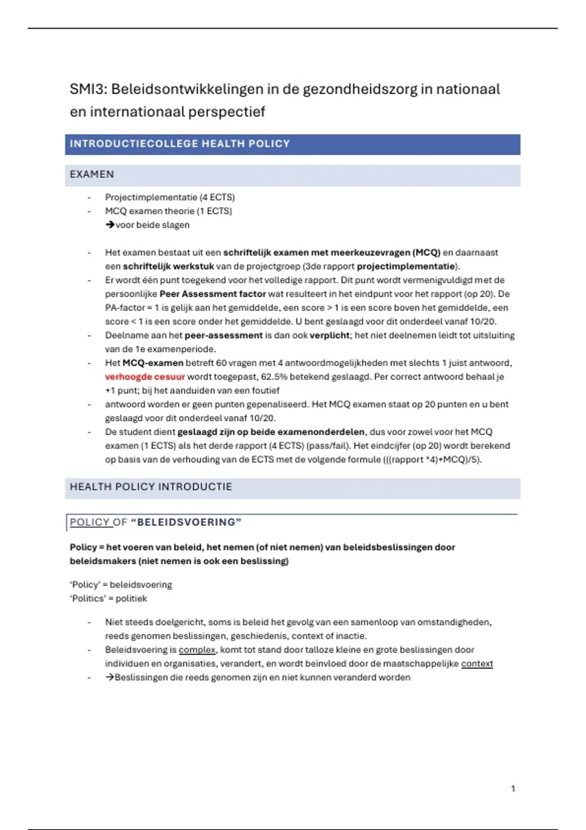 HEALTH POLICY INTRODUCTIE