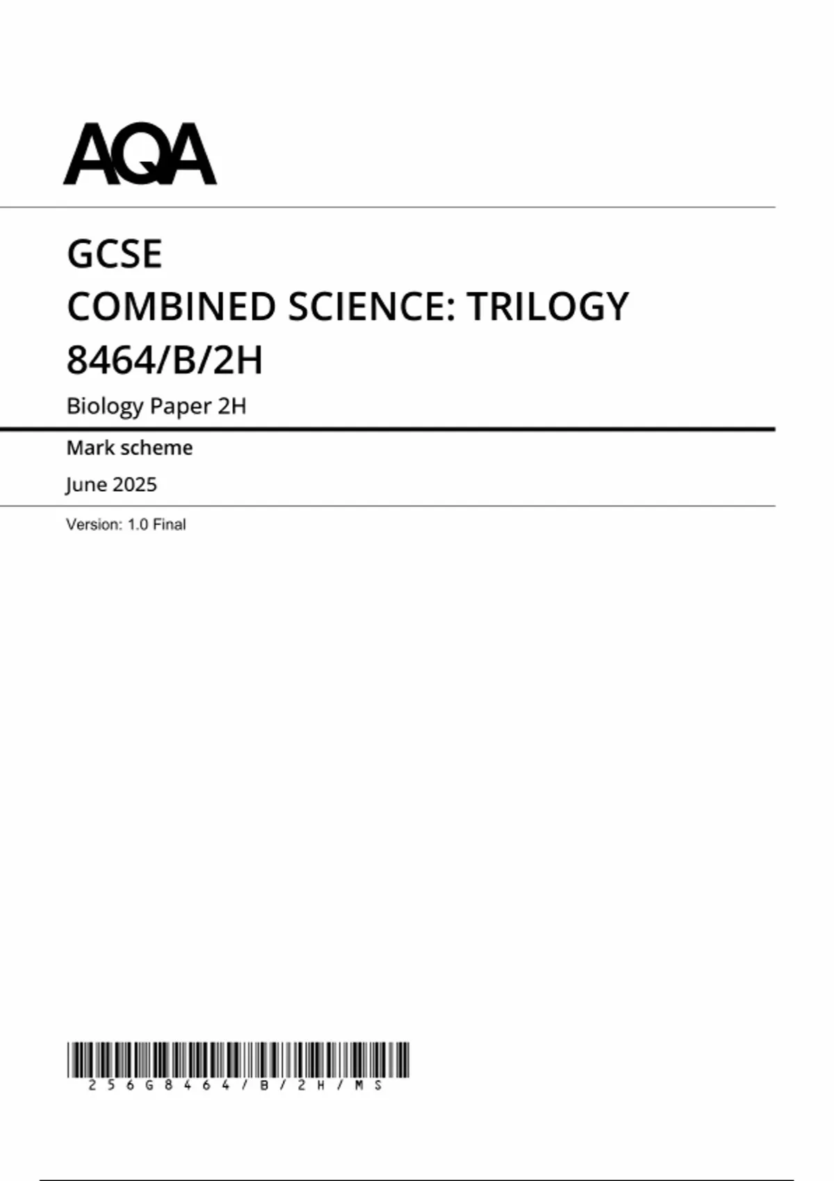 2025 AQA GCSE COMBINED SCIENCE: TRILOGY HIGH TIER BIOLOGY PAPER 2H MARKSCHEME (8464/B/2H).