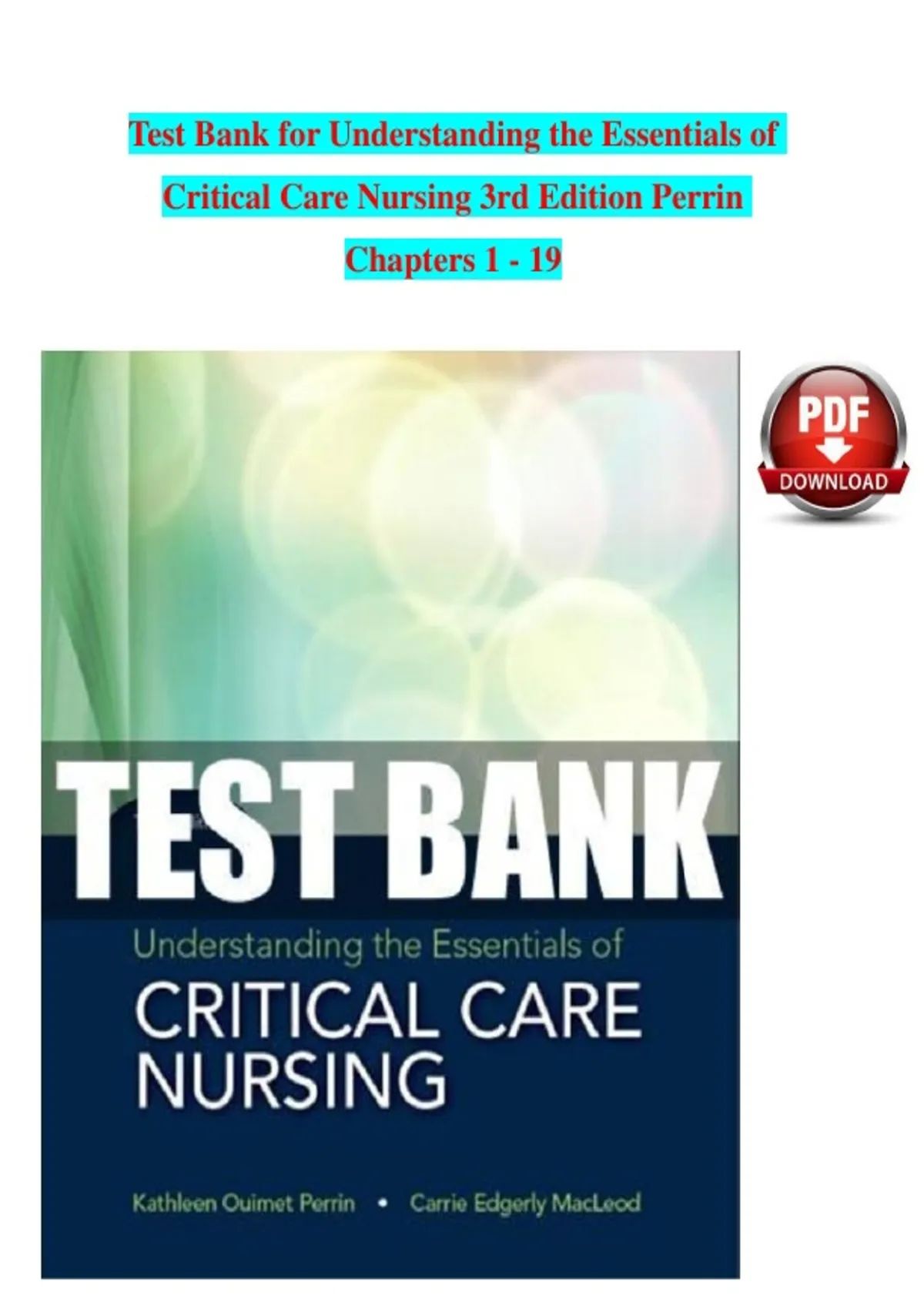 , TEST BANK FOR UNDERSTANDING THE ESSENTIALS OF CRITICAL CARE NURSING
