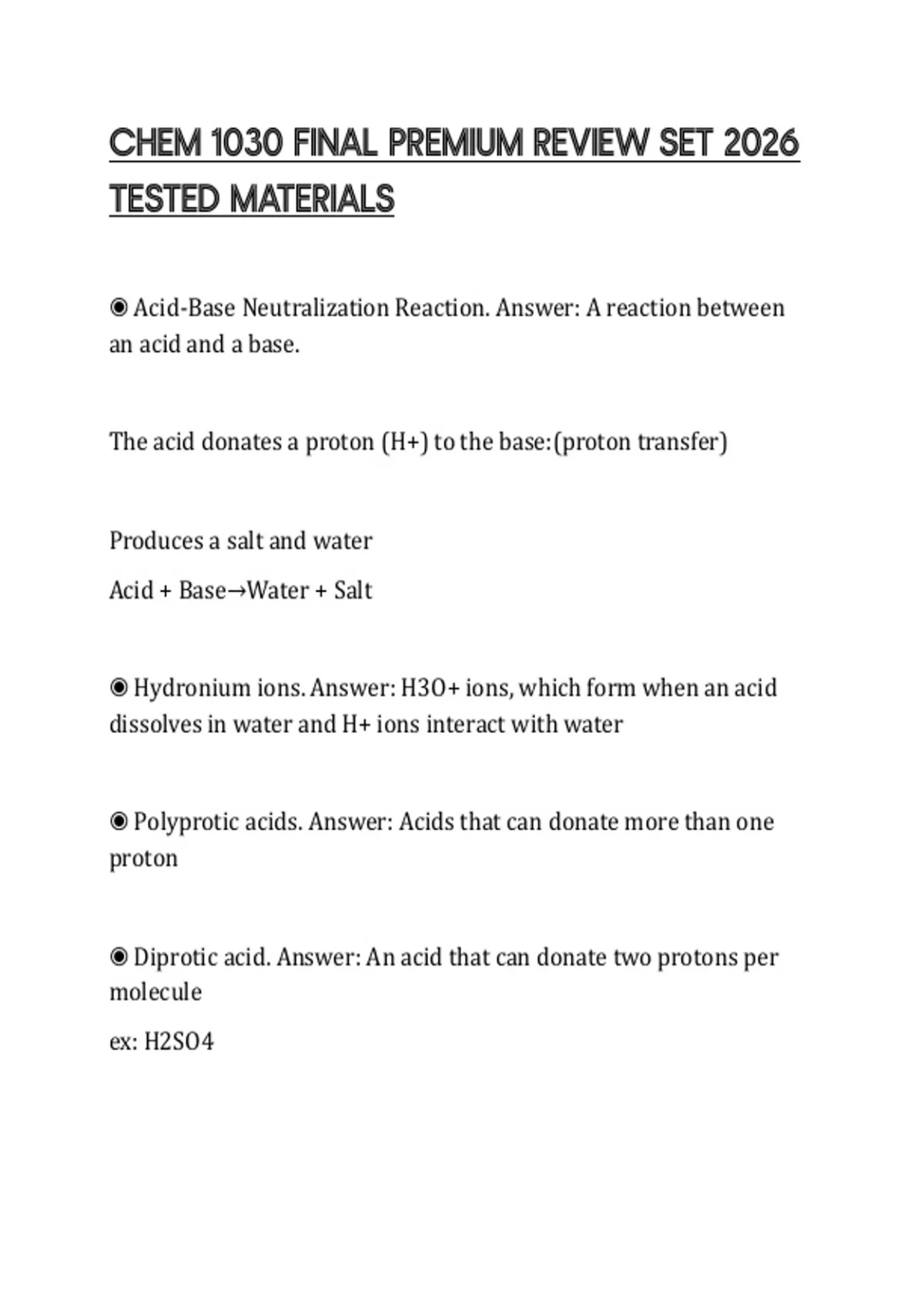 ◉ Polyprotic acids. Answer: Acids that can donate more than one