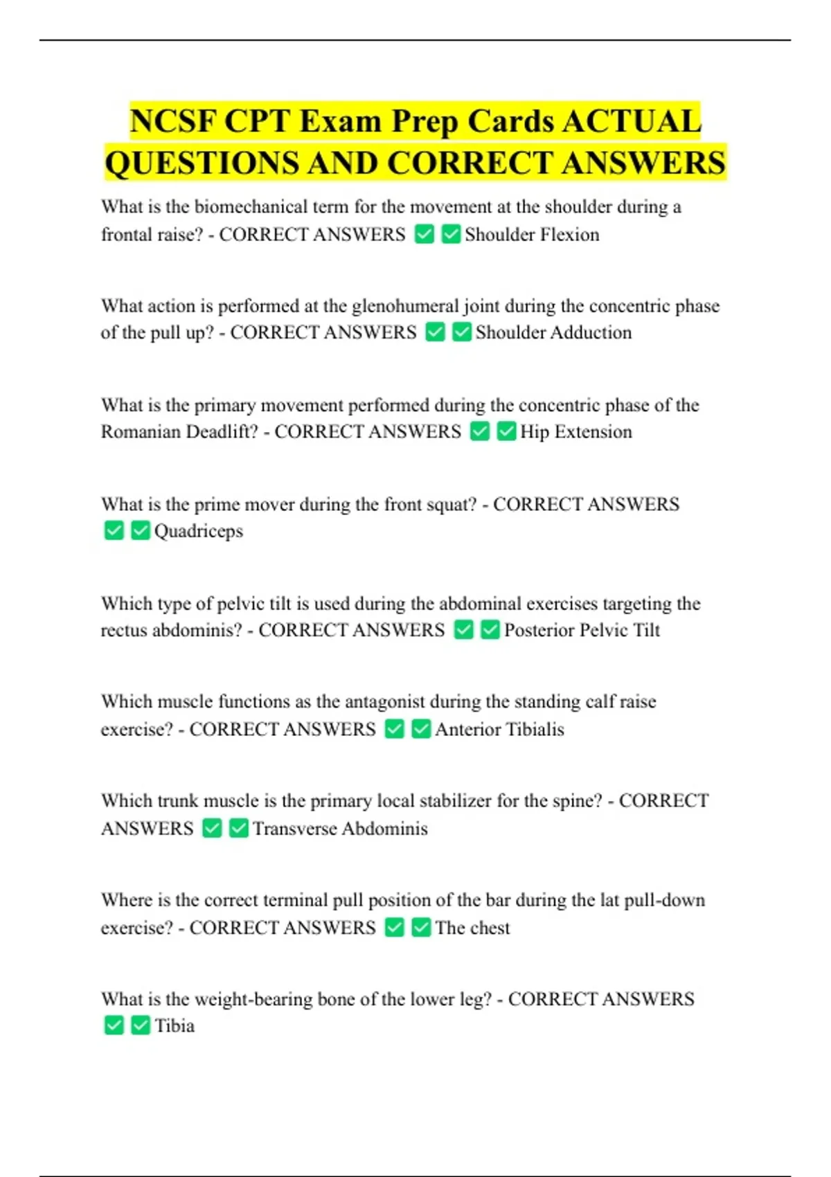NCSF CPT Exam Prep Cards ACTUAL QUESTIONS AND CORRECT ANSWERS