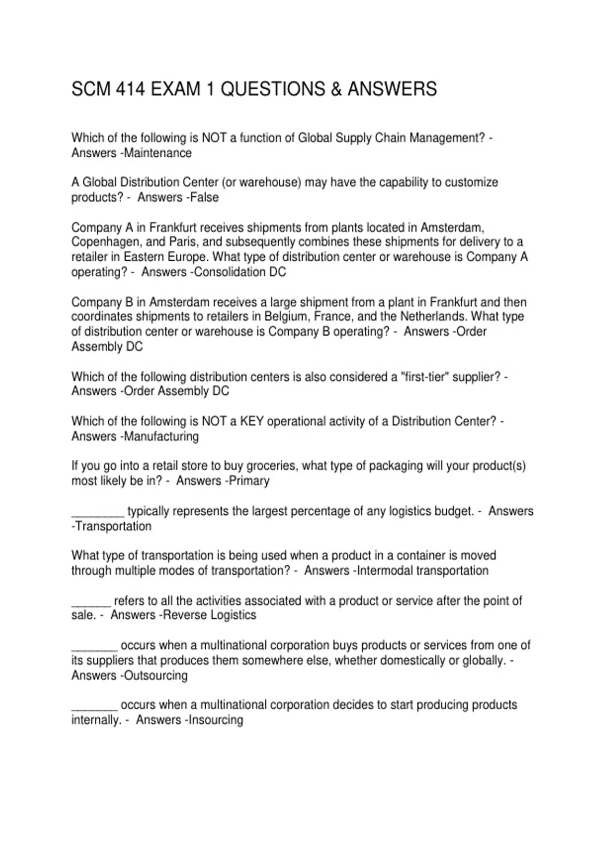 SCM 414 EXAM 1 QUESTIONS & ANSWERS