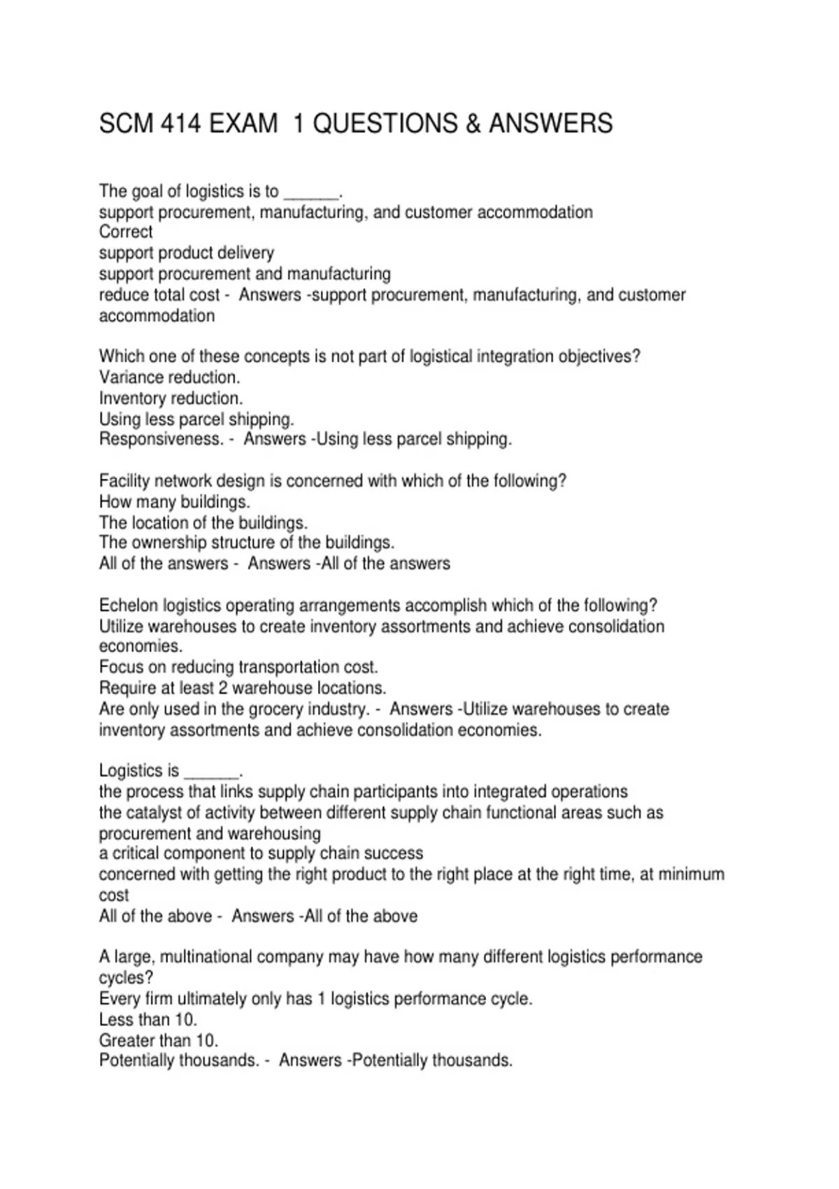 SCM 414 EXAM 1 QUESTIONS & ANSWERS
