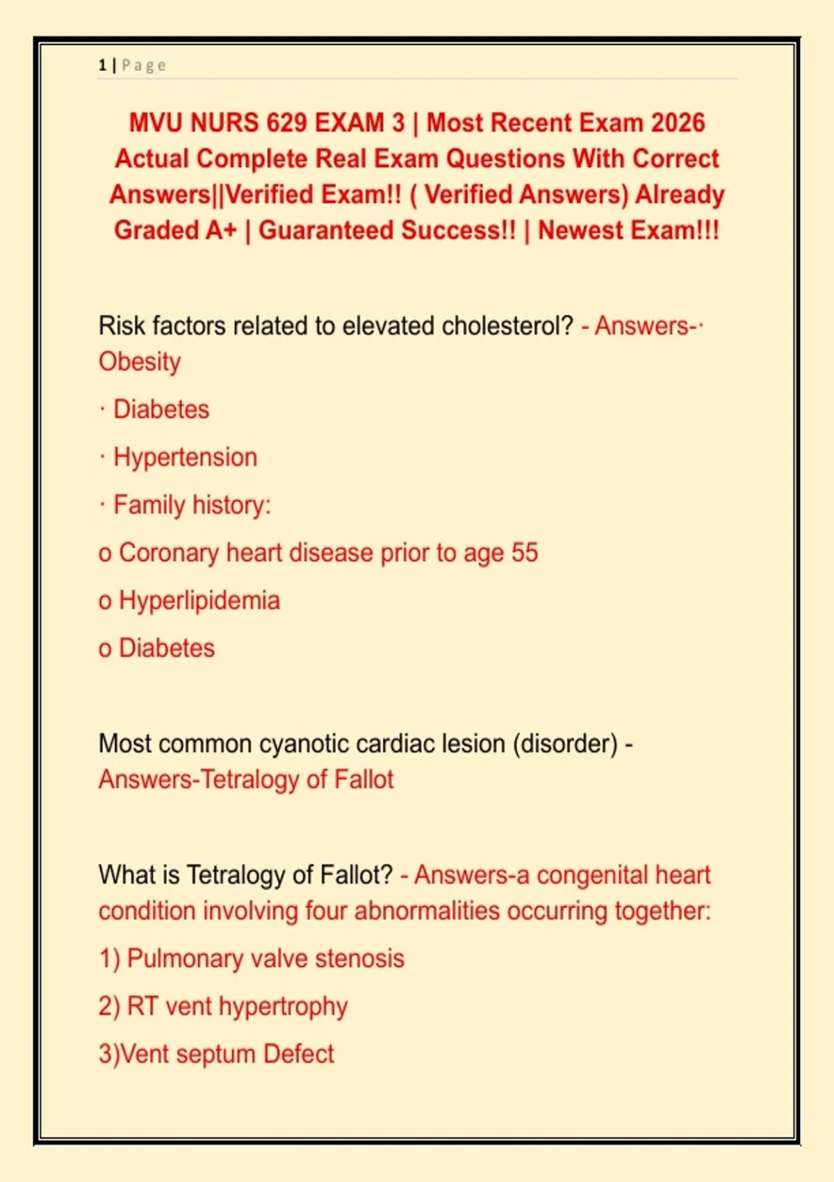 MVU NURS 629 EXAM 3 | Most Recent Exam 2026