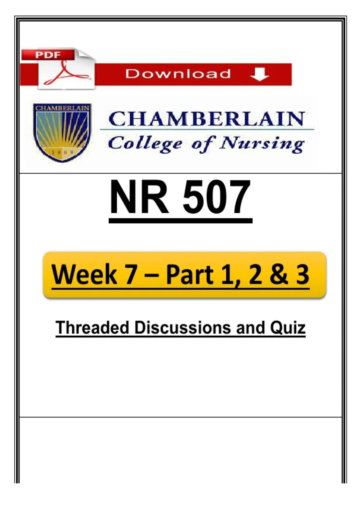 NR 507 Week 7 Parts 1–3 Threaded Discussions & Quiz (2026) PDF | Chamberlain
