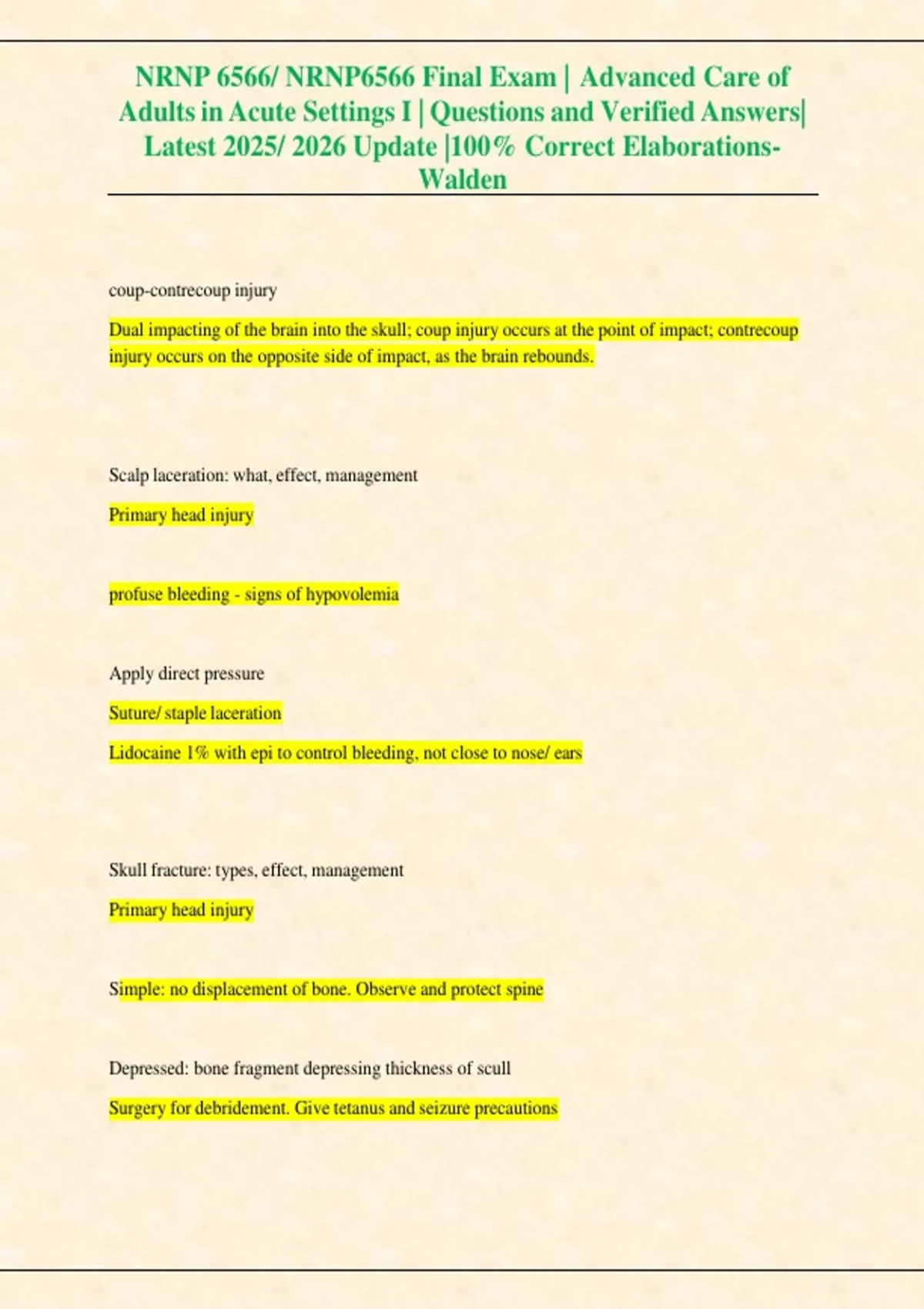 , NRNP 6566/ NRNP6566 Final Exam | Advanced Care of