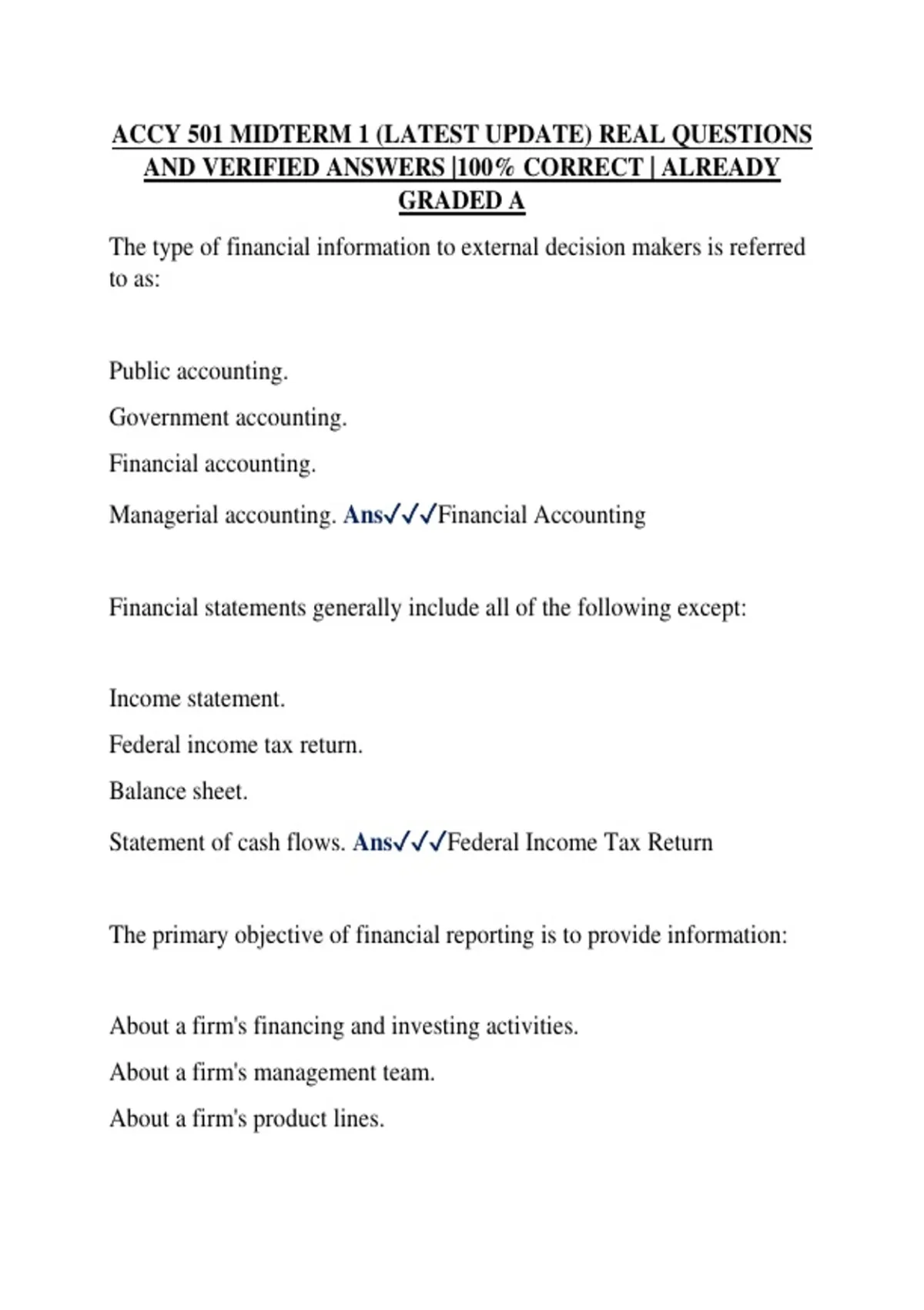 ACCY 501 MIDTERM 1 (LATEST UPDATE) REAL QUESTIONS AND VERIFIED ANSWERS |100% CORRECT | ALREADY GRADED A