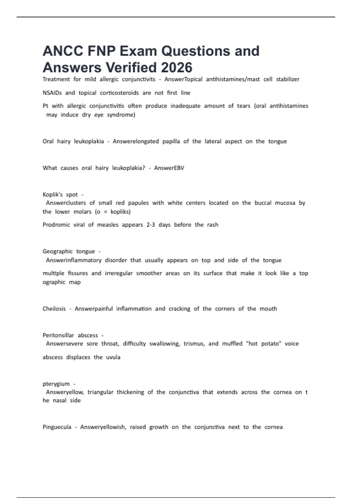 ANCC FNP Exam Questions and Answers Verified 2026