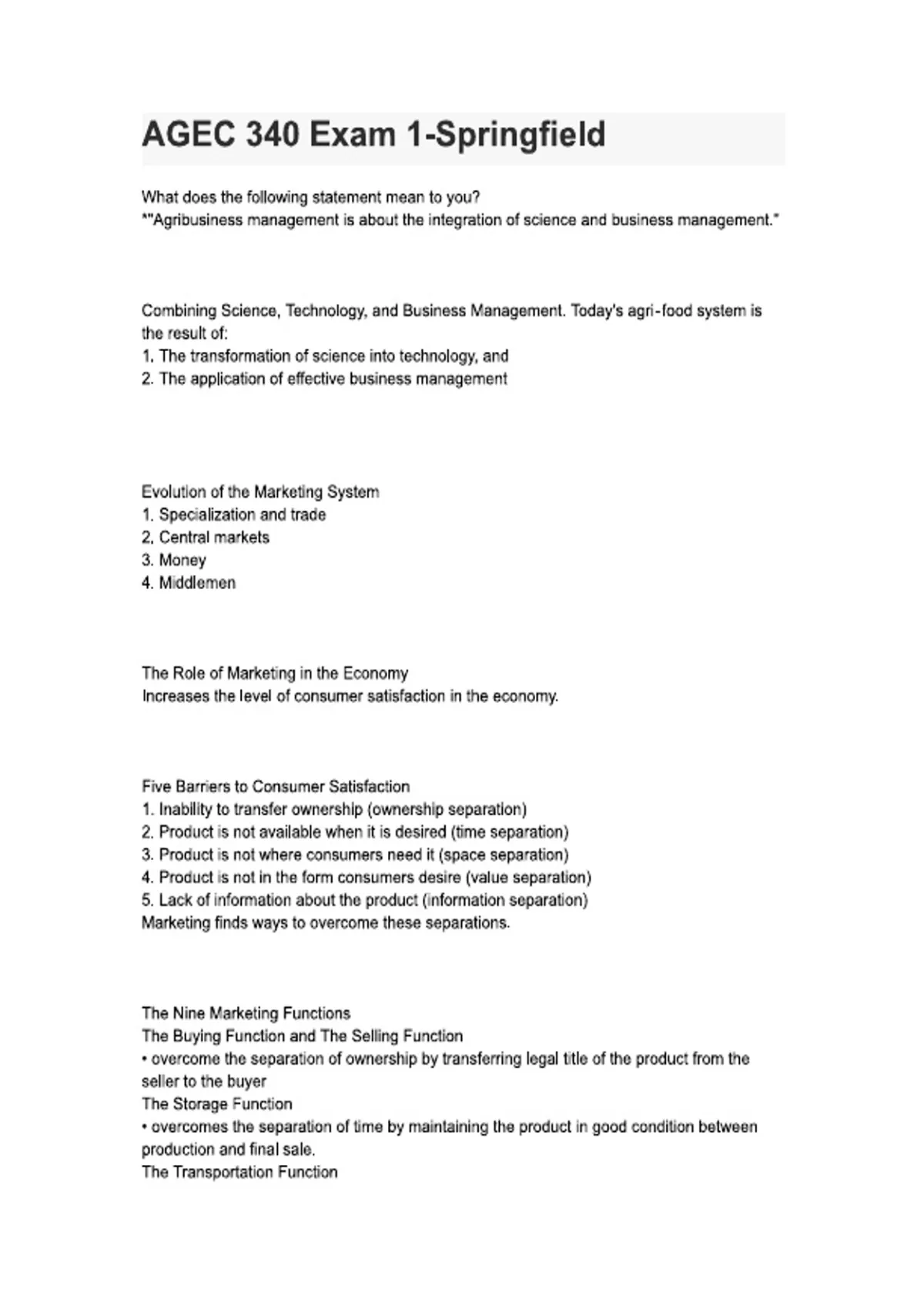 Exam of 5 pages for the course AGEC 340 at AGEC 340 (AGEC 340 EXAM 1)