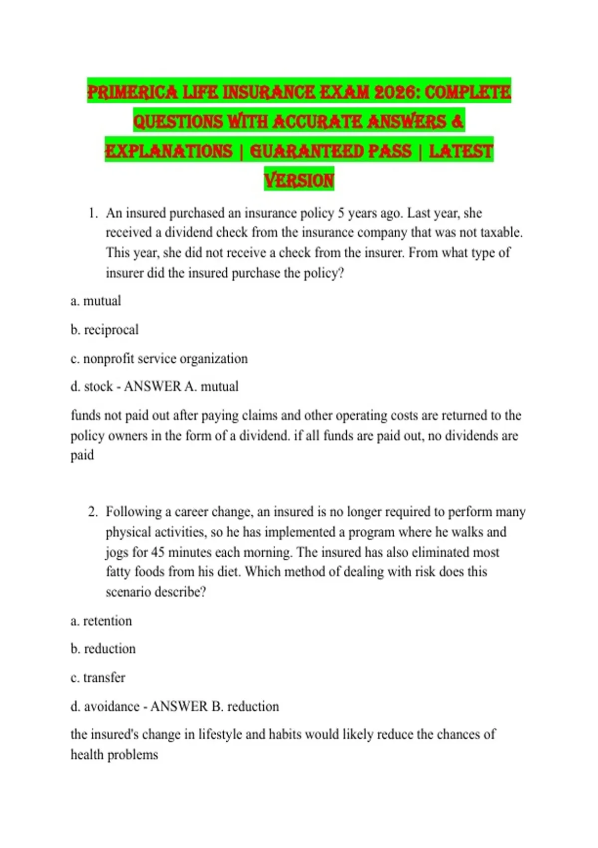 1. An insured purchased an insurance policy 5 years ago. Last year, she
