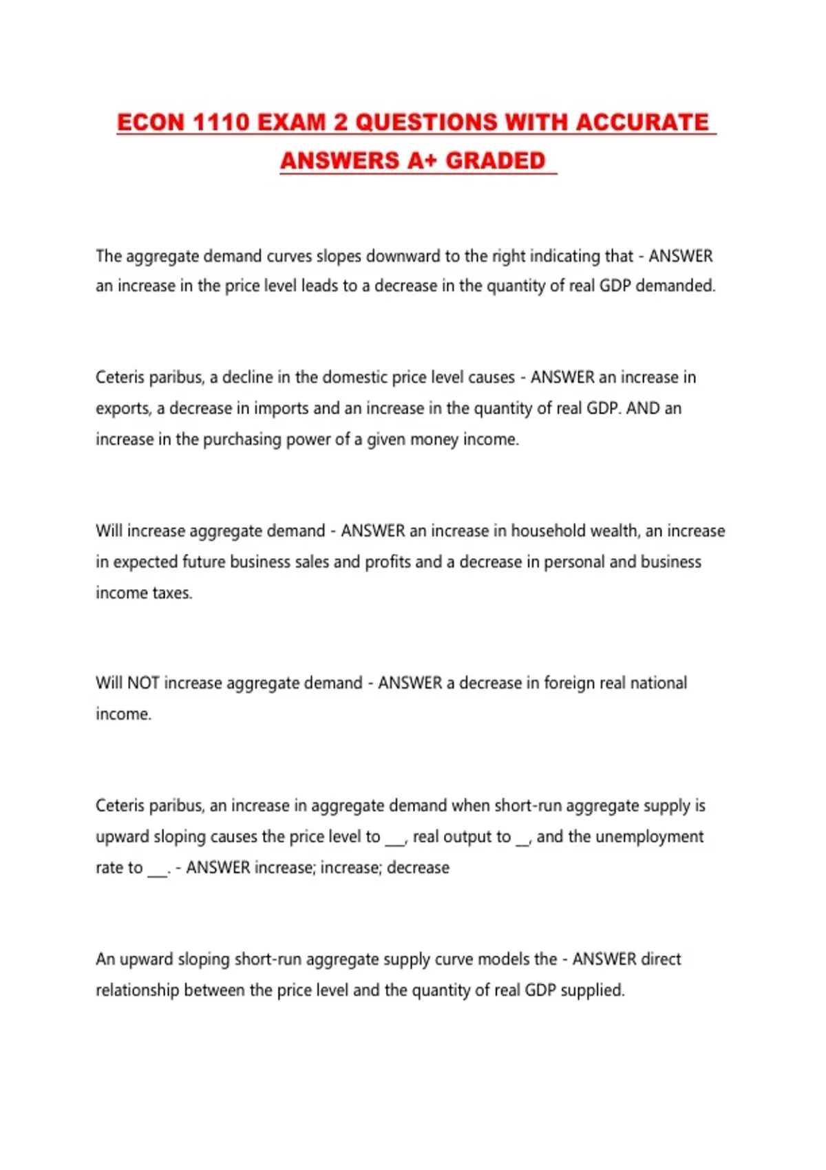 ECON 1110 EXAM 2 QUESTIONS WITH ACCURATE