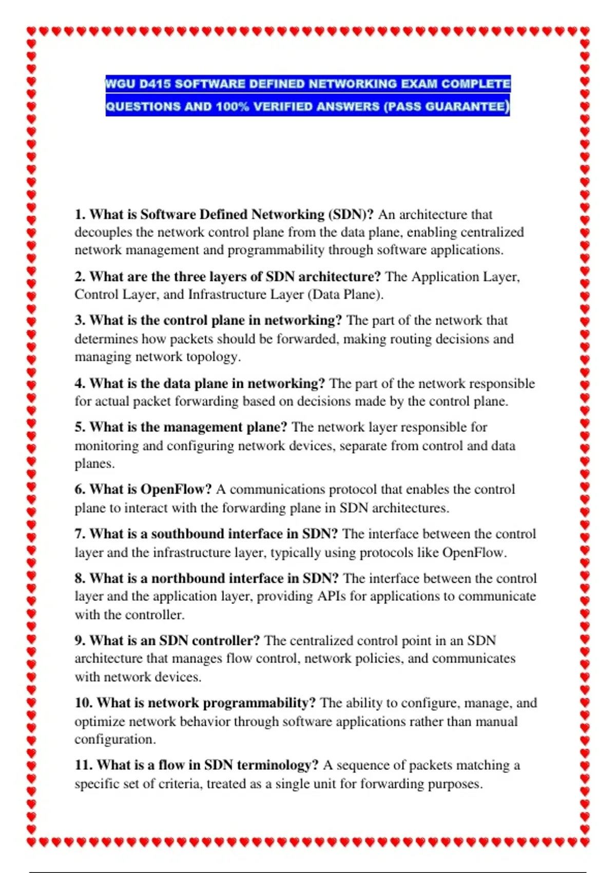 1. What is Software Defined Networking (SDN)? An architecture that