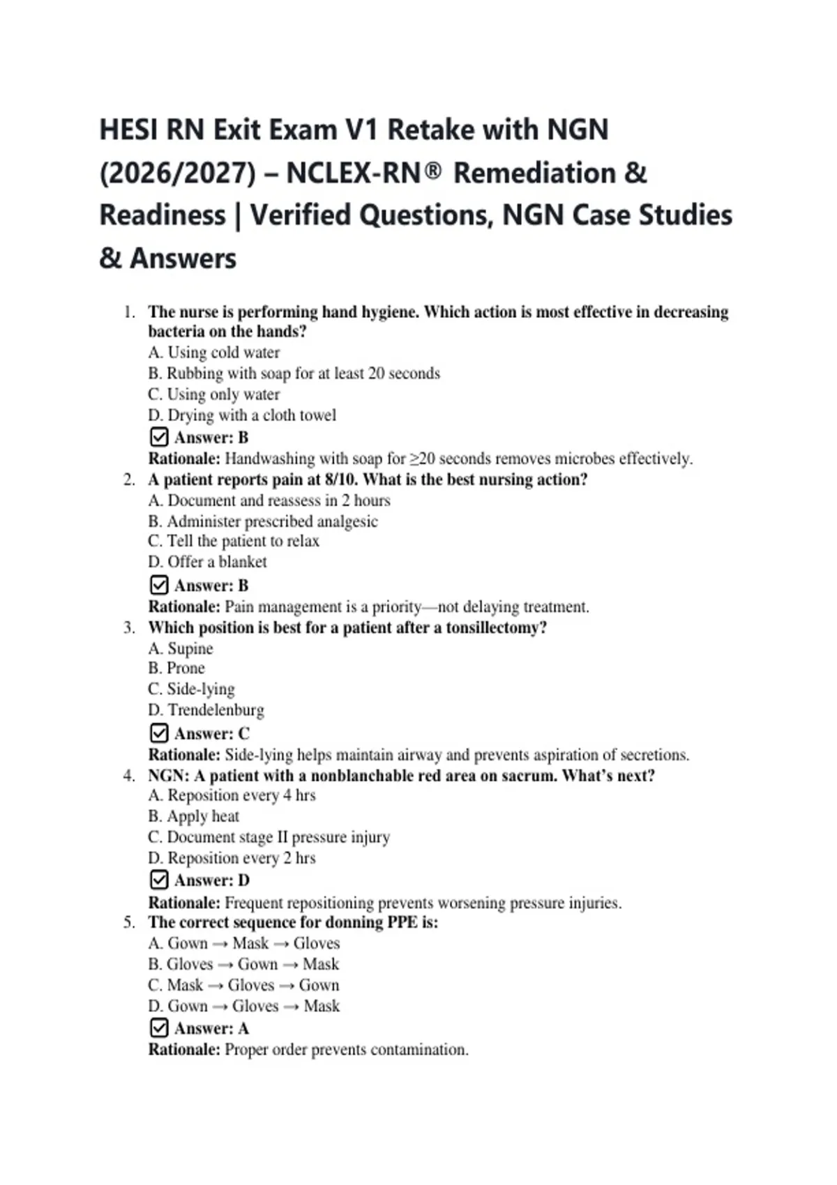 HESI RN Exit Exam V1 Retake with NGN