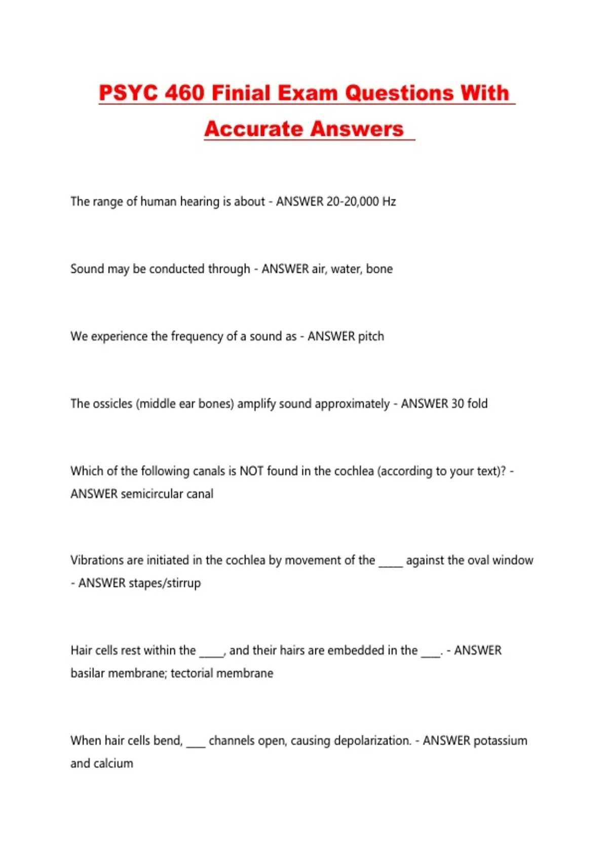 PSYC 460 Finial Exam Questions With Accurate Answers ...