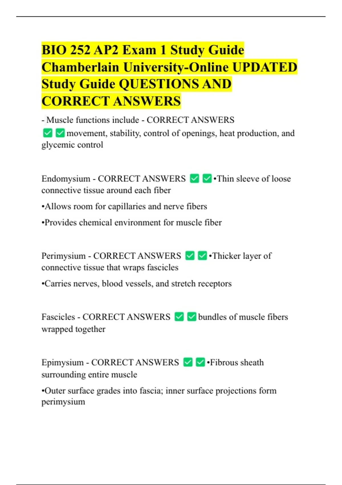 BiO 252 exam 2 Chamberlain university UPDATED Study Guide QUESTIONS AND CORRECT ANSWERS -