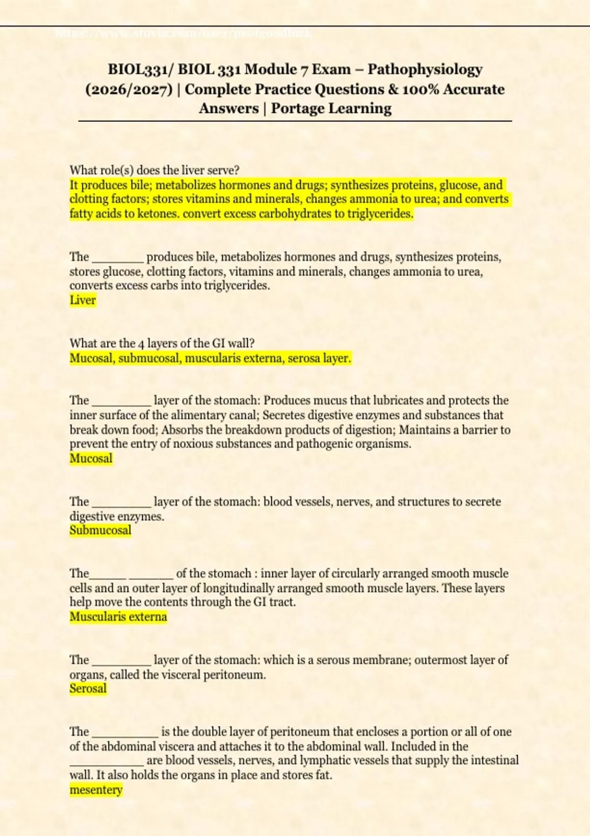 BIOL331/ BIOL 331 Module 7 Exam – Pathophysiology