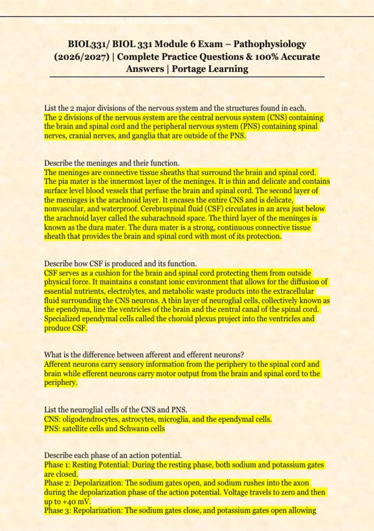 BIOL331/ BIOL 331 Module 6 Exam – Pathophysiology