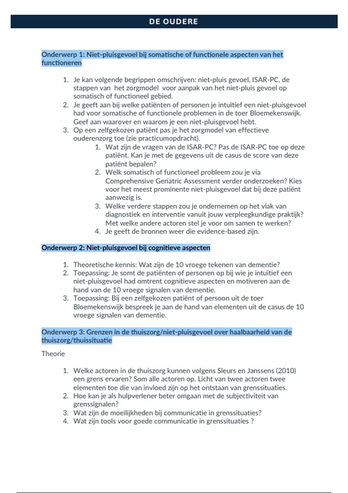 Hier een samenvatting van de te kennen leerstof van eerstelijnszorg het onderdeel "de oudere" in het derde jaar bachelor verpleegkunde.