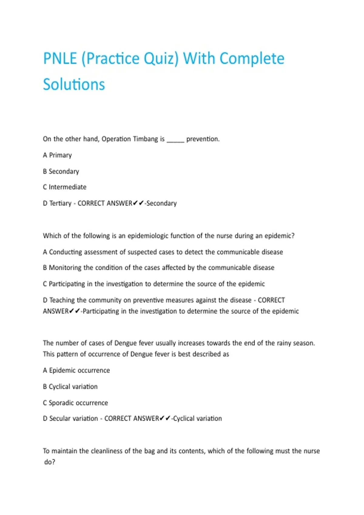 ANSWER✔✔-Participating |in |the |investigation |to |determine |the |source |of |the |epidemic