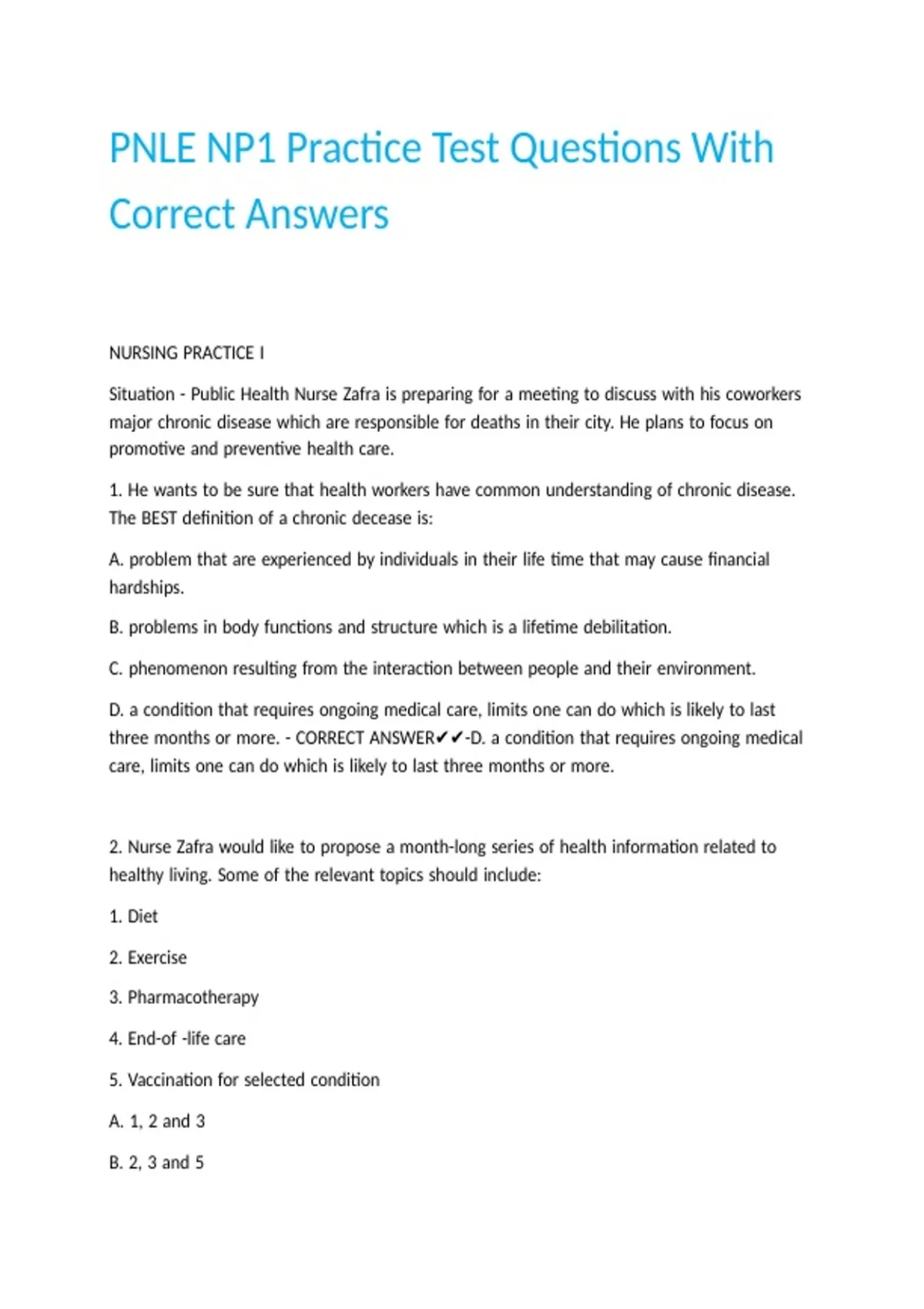 PNLE NP1 Practice Test Questions With Correct Answers