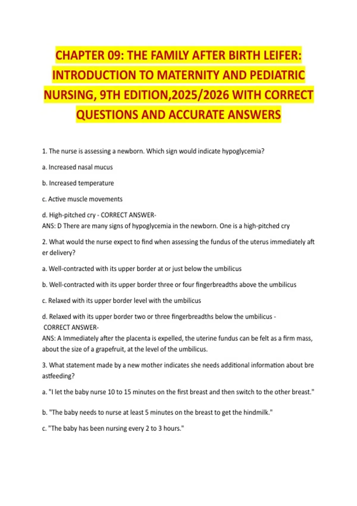Leifer: Maternity and Pediatric Nursing - Chapter 9 (2025/2026)