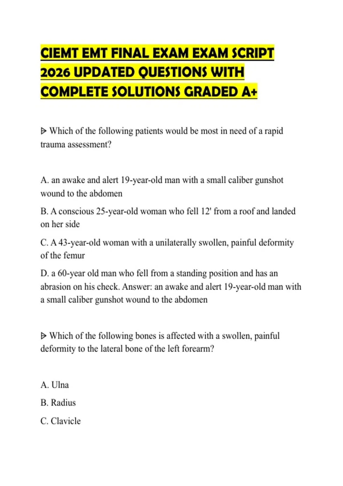 CIEMT EMT FINAL EXAM EXAM SCRIPT 2026 UPDATED QUESTIONS WITH COMPLETE SOLUTIONS GRADED A+