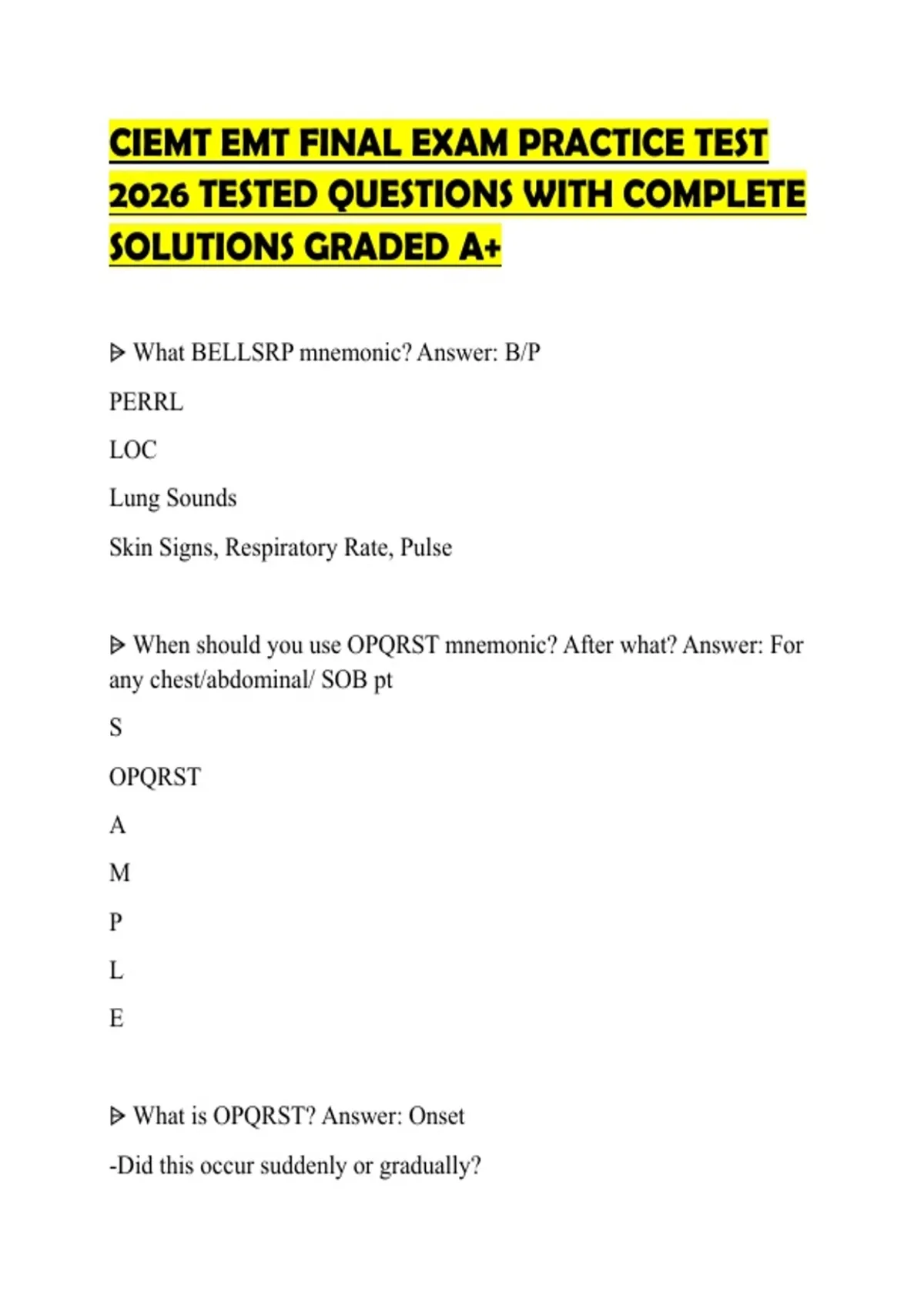 ⩥ What is OPQRST? Answer: Onset