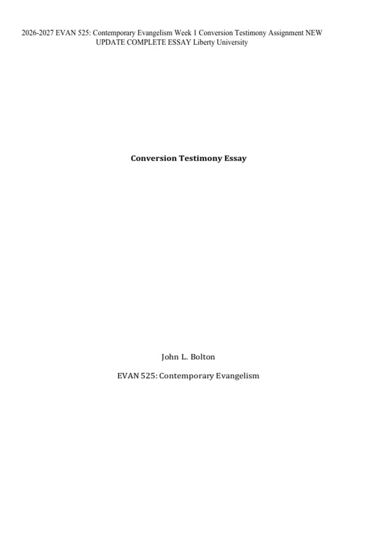 EVAN 525: Contemporary Evangelism Week 1 Conversion Testimony Assignment NEW UPDATE COMPLETE ESSAY Liberty University